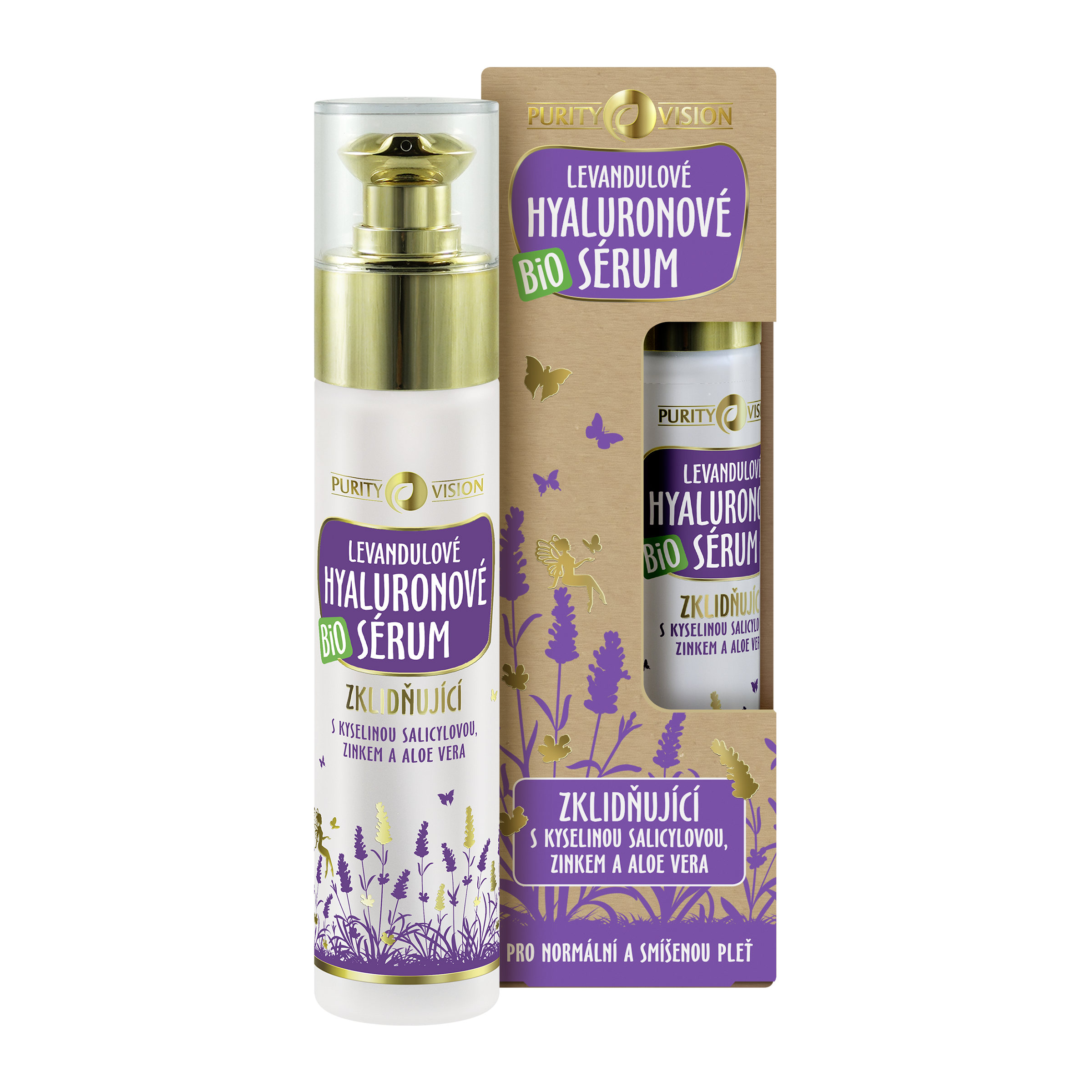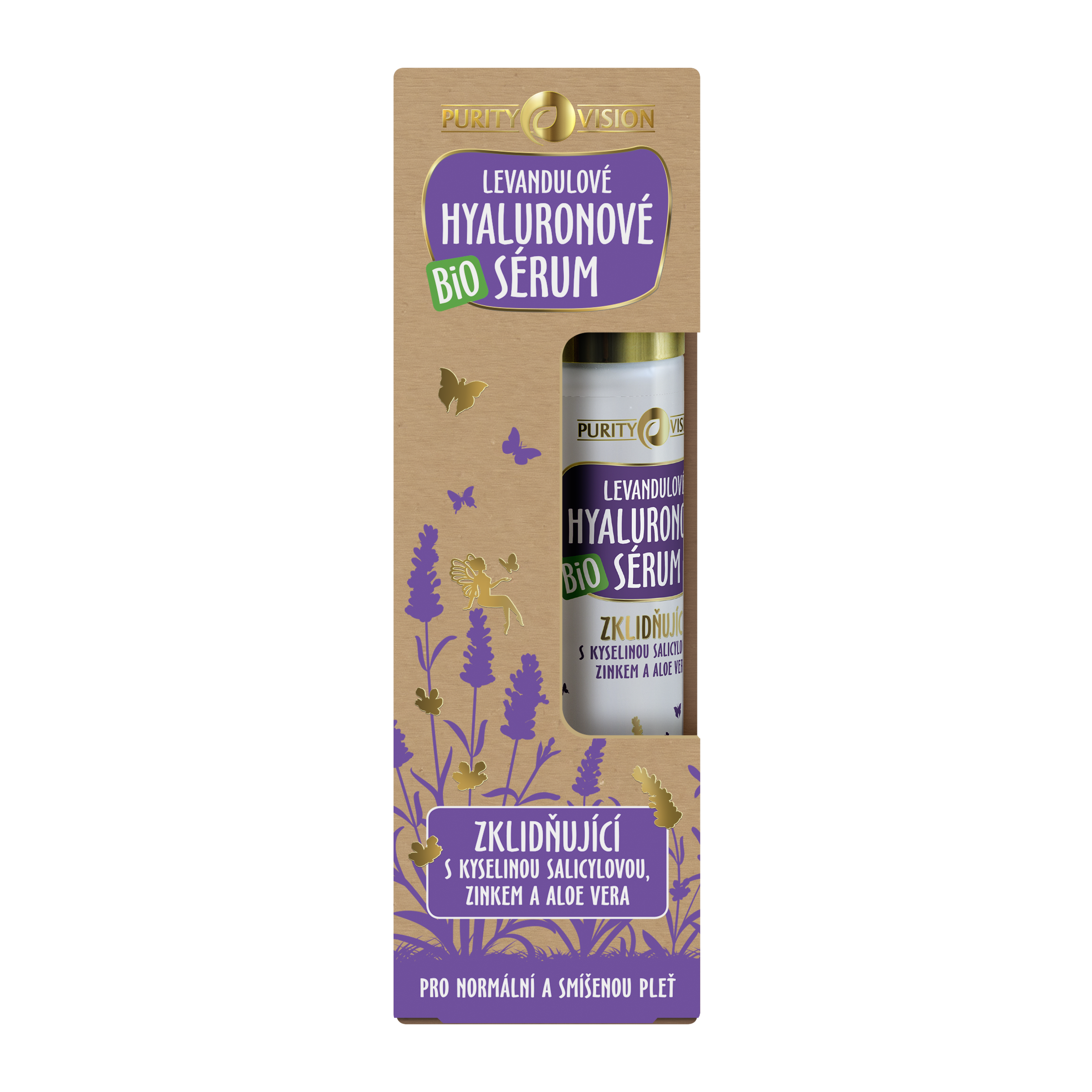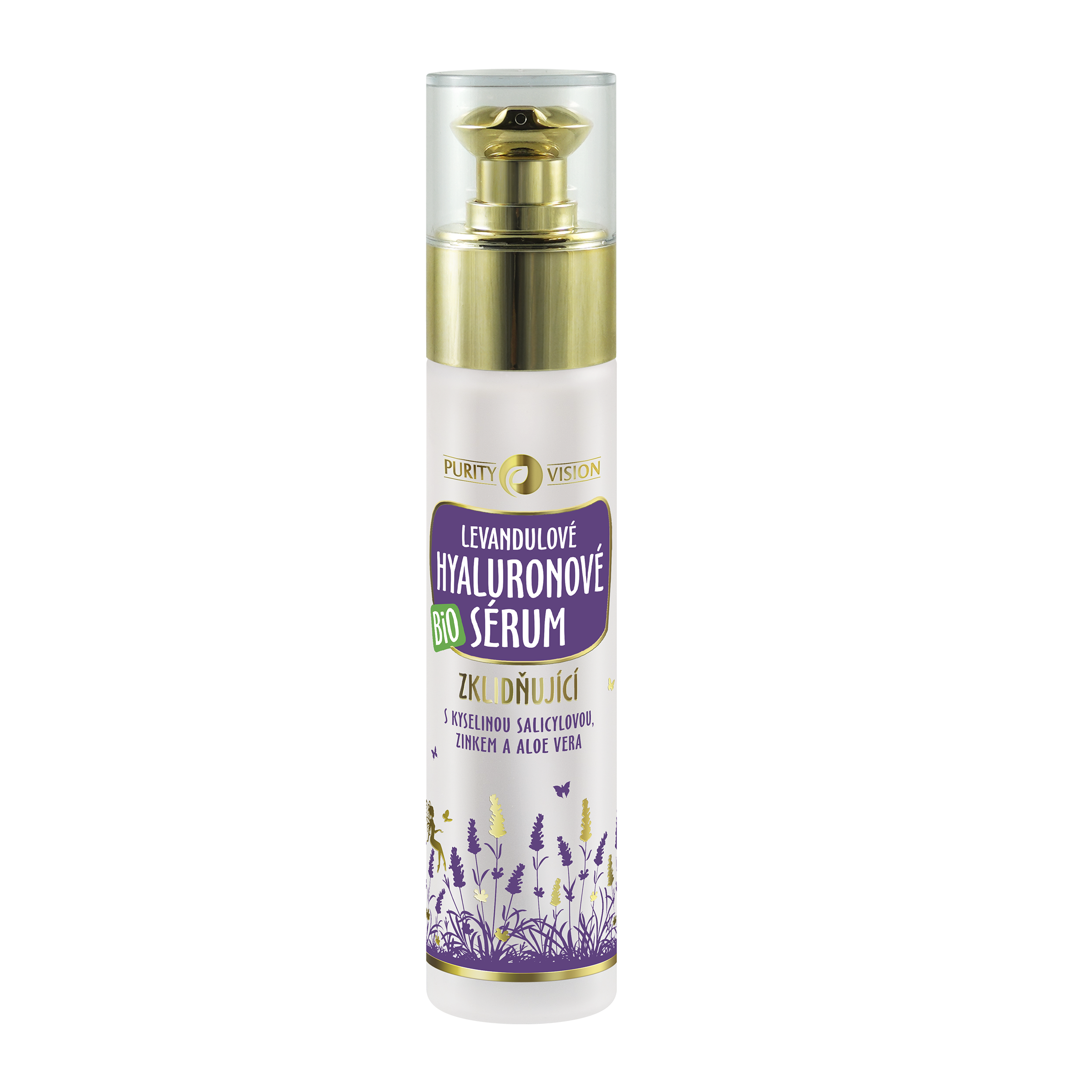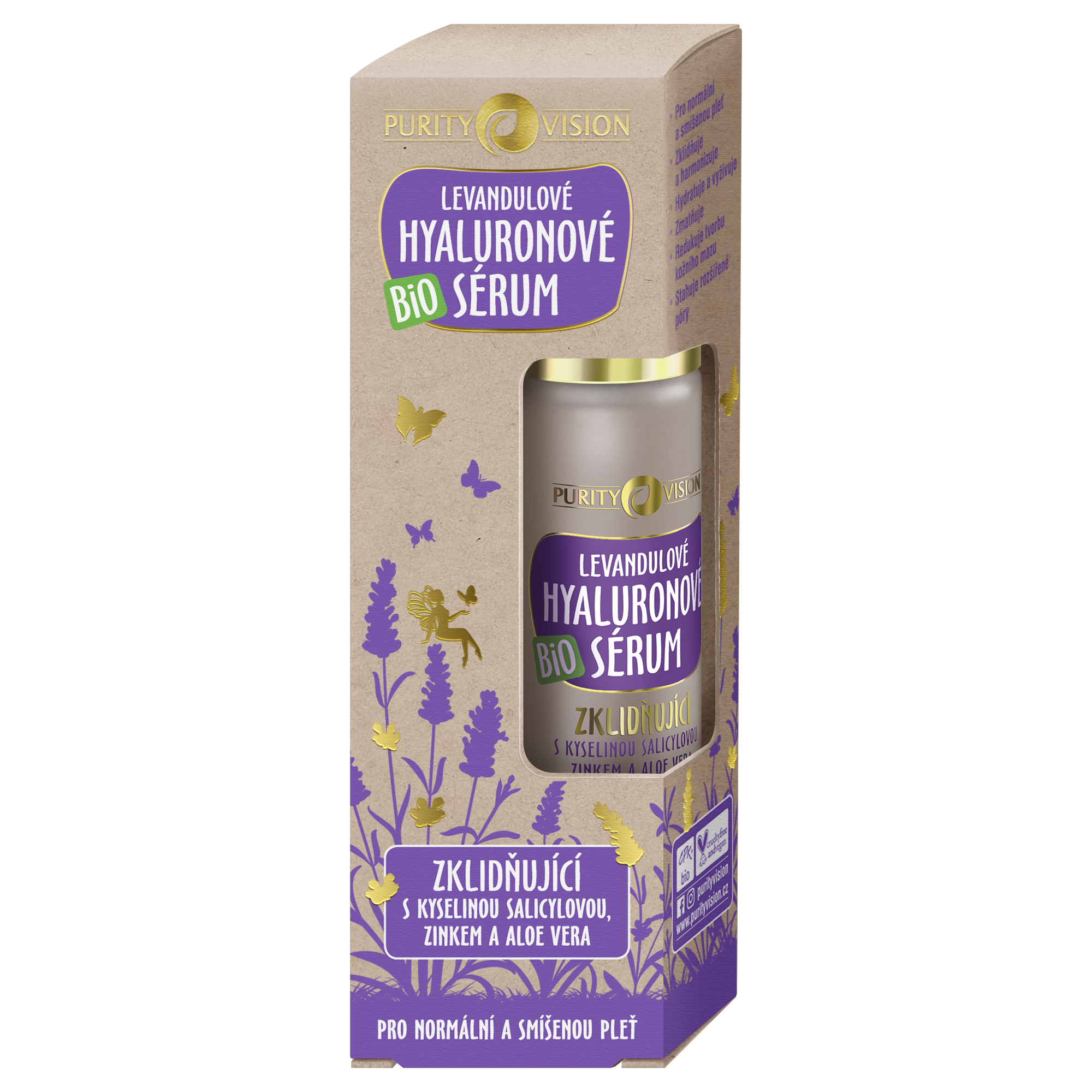 Bio Levandulové hyaluronové sérum PURITY VISION s kyselinou salicylovou, zinkem a BIO levandulovou vodou si oblíbíte pro jeho zklidňující efekt, který ocení i problematická a aknózní pleť.