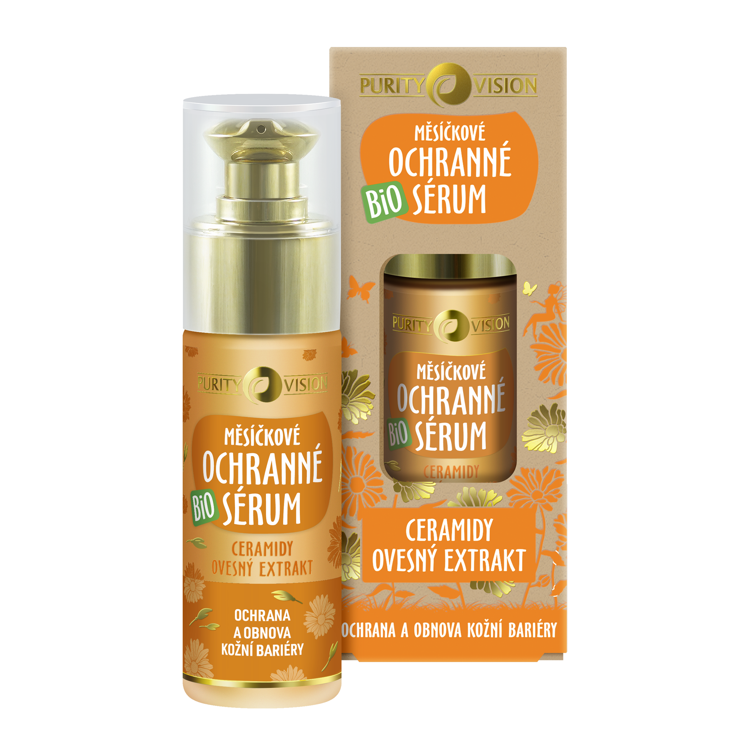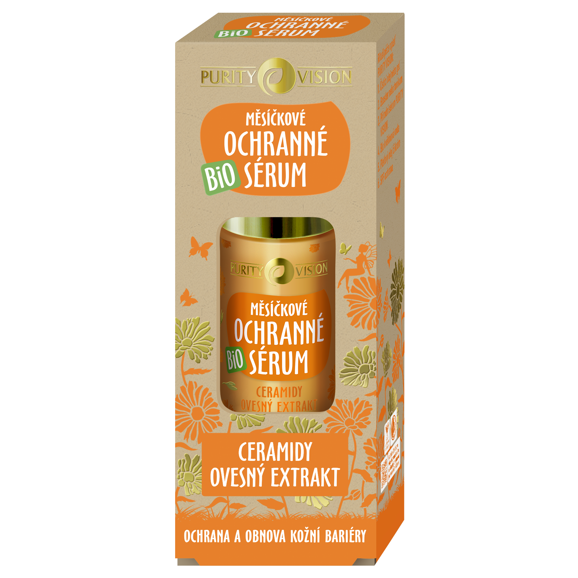 Bio měsíčkové ochranné sérum – obnova a ochrana pleti. Složení Bio měsíčkového ochranného séra je nabité přírodními látkami, které podporují regeneraci přetížené pleti. Výsledkem je pleť, která je spokojená, zklidněná s vyrovnanou kožní bariérou. Obsahuje ceramidy a extrakt z mořských řas, které posilují kožní bariéru a zadržují hydrataci. Extrakt z ovsa a probiotika napomáhají snížit podráždění pleti a podporují její rovnováhu. Rakytníkový a jojobový olej vyživují a regenerují, zatímco slaměnka a měsíček zklidňují podráždění. Vhodné i jako SOS péče nebo kúra pro obnovu kožní bariéry.