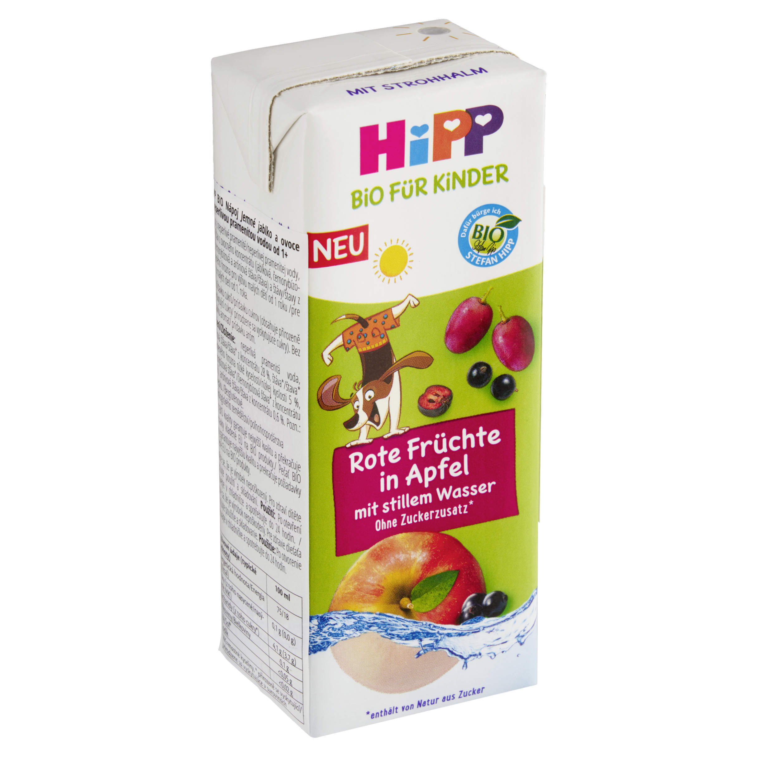 HiPP Bio nápoj jemné jablko a ovoce s neperlivou pramenitou vodou. Pečeť Bio kvality garantuje nejvyšší kvalitu a překračuje požadavky kladené EU na Bio produkty.