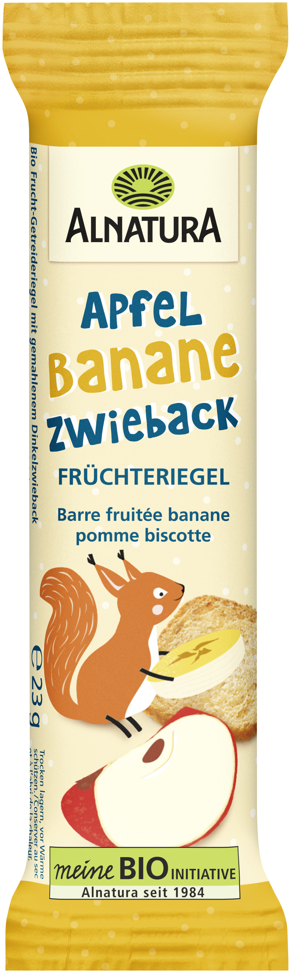 Aromatická ovocná a obilná tyčinka v bio kvalitě, jejíž sladkost pochází pouze z použitého ovoce (ingredience přirozeně obsahují cukr). Pro děti od 3 let