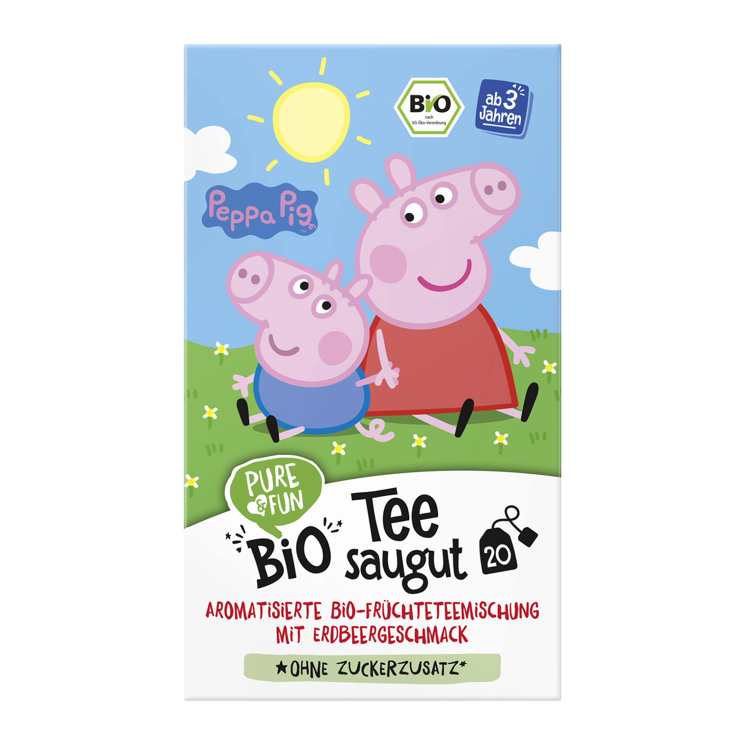 Peppa Pig BIO ovocný čaj s jahodovou příchutí. Vhodný od 3 let věku. Bez přidaného cukru.