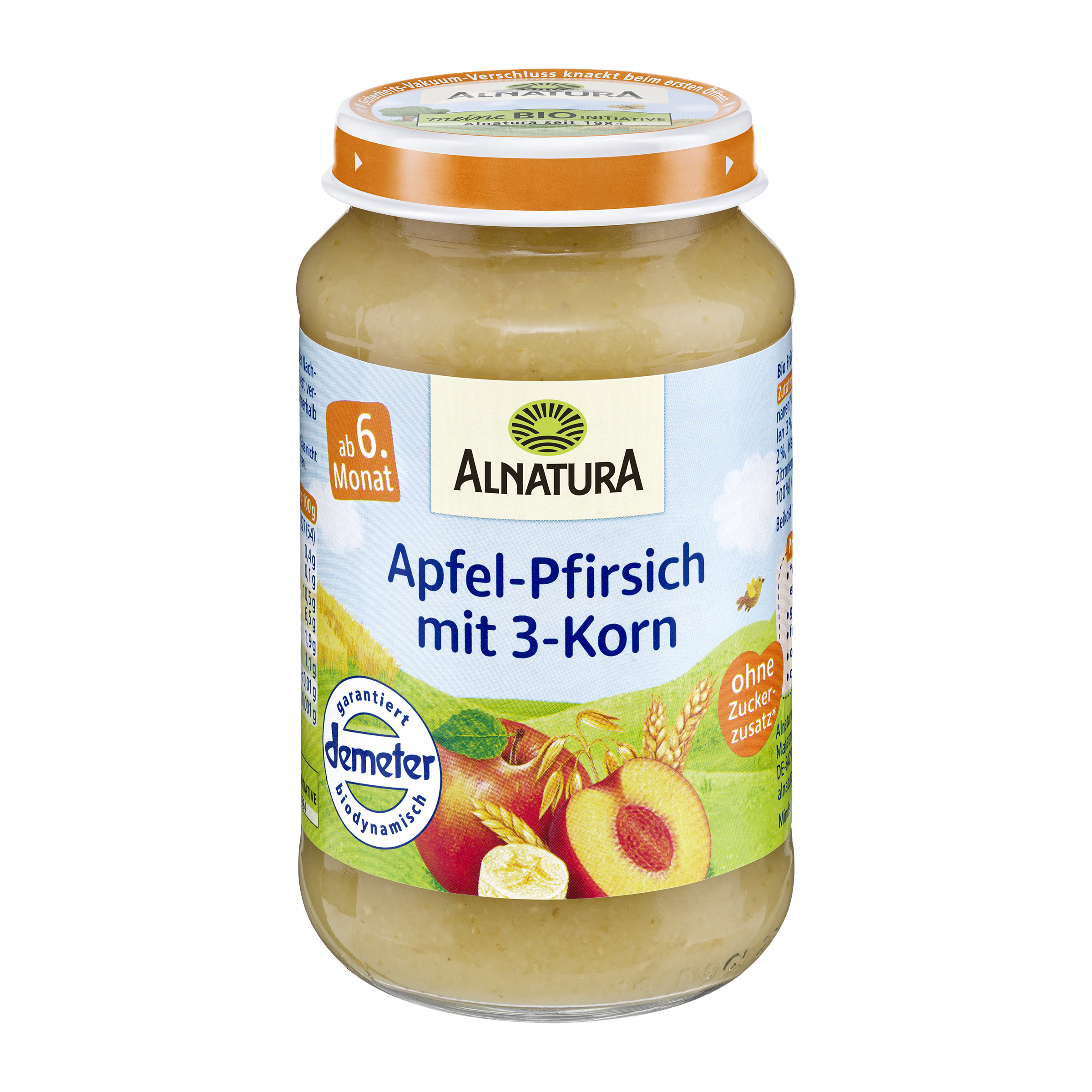 - BIO jablečno-broskvový příkrm se 3 druhy celozrnných vloček. Potravina pro kojence a malé děti od začátku 6. měsíce. Pasterováno.
