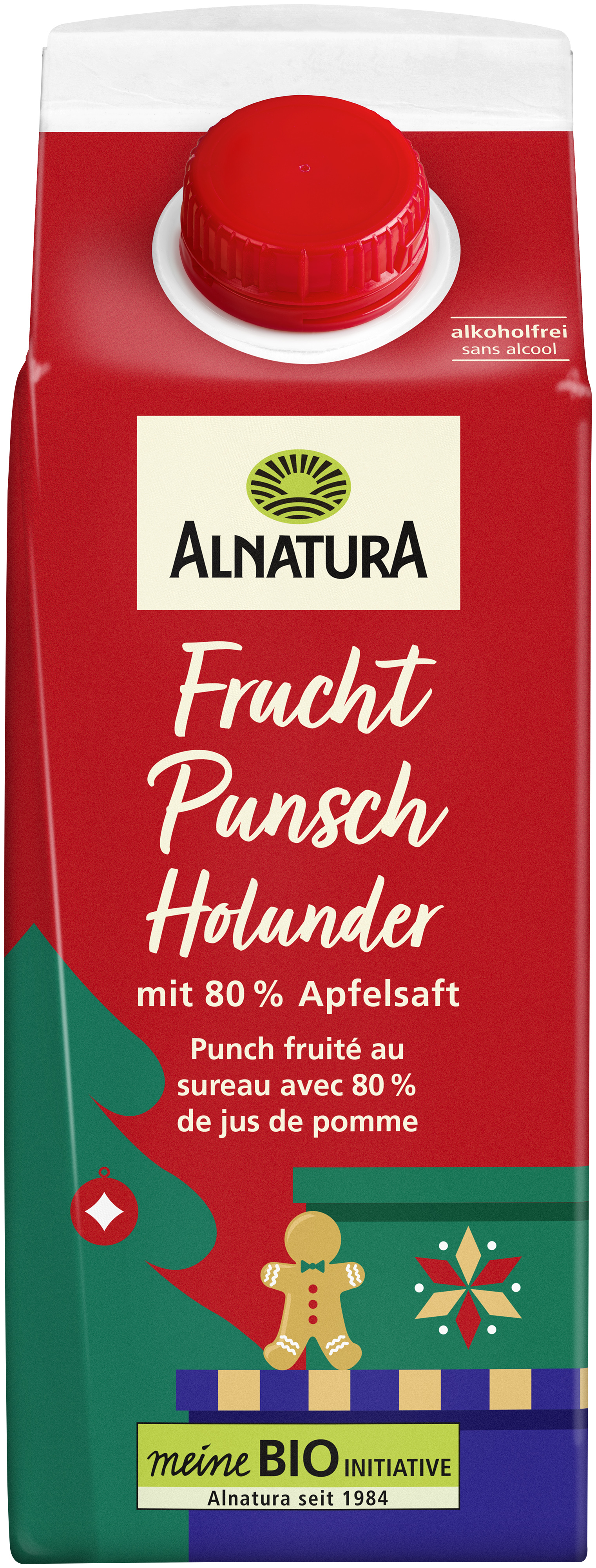 BIO Ovocný nealkoholický nápoj se zimním kořením, ze šťávy z jablek, bezinek a višní. Pasterováno.