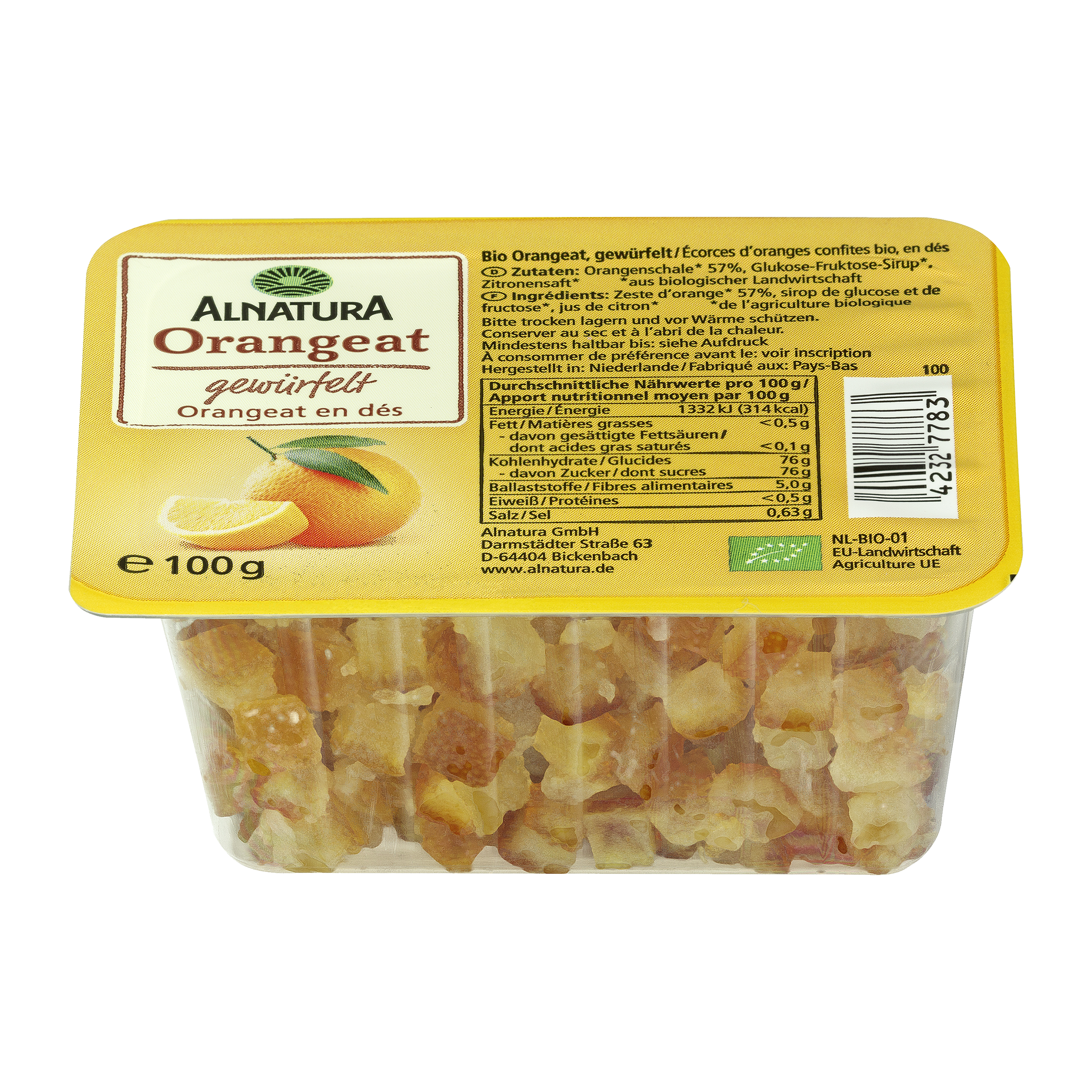 Na ovocný chléb, těsto a podobně: kandovaná pomerančová kůra dodá pečivu ovocný, trpký nádech, ale hodí se i jako poleva na müsli nebo jogurt. Všechny suroviny pro výrobu kandované pomerančové kůry Alnatura pocházejí z ekologického zemědělství.