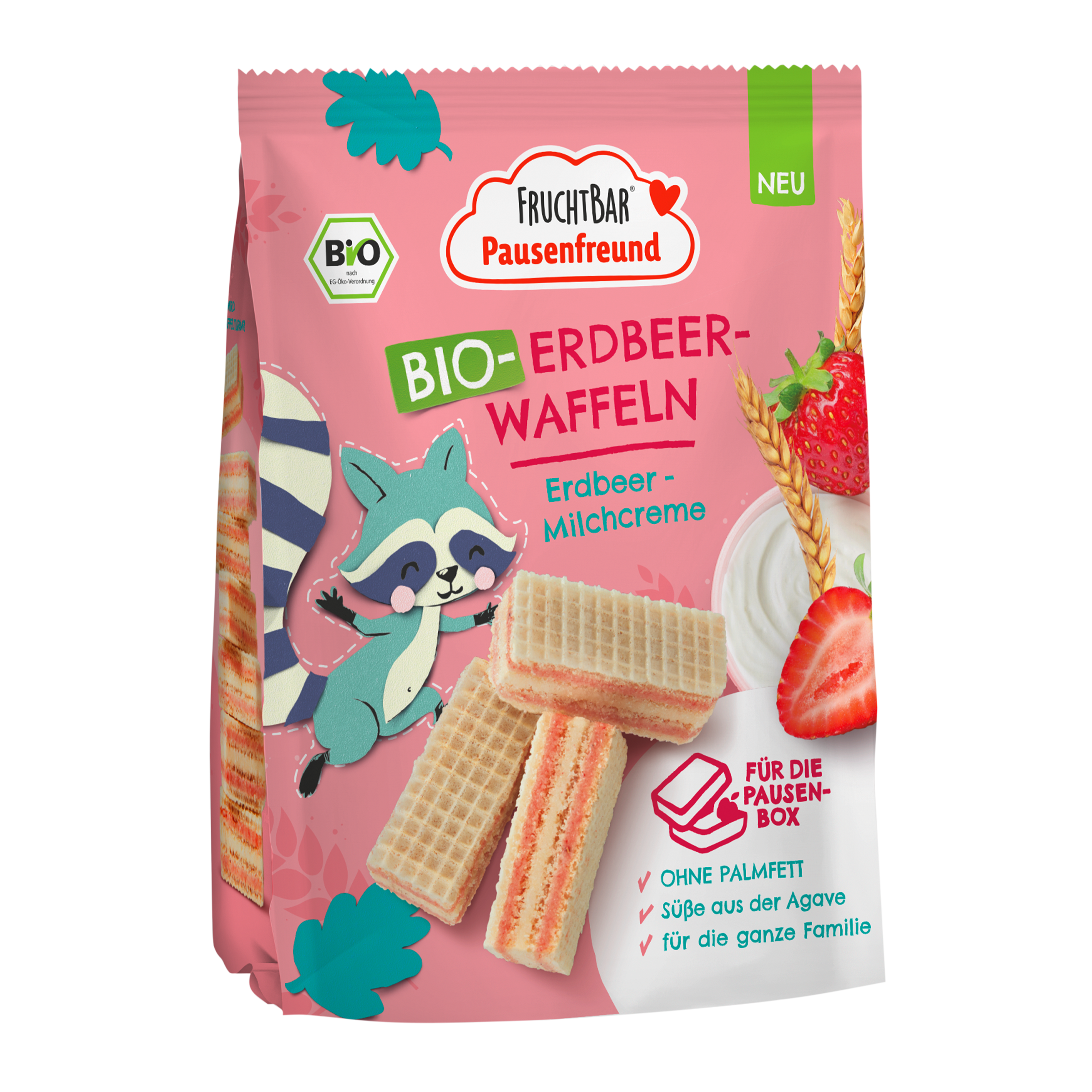 BIO vaflové sušenky plněné krémem s jahodovou příchutí si oblíbí nejen děti, ale i dospělí. Výrobek z certifikovaného ekologického zemědělství.