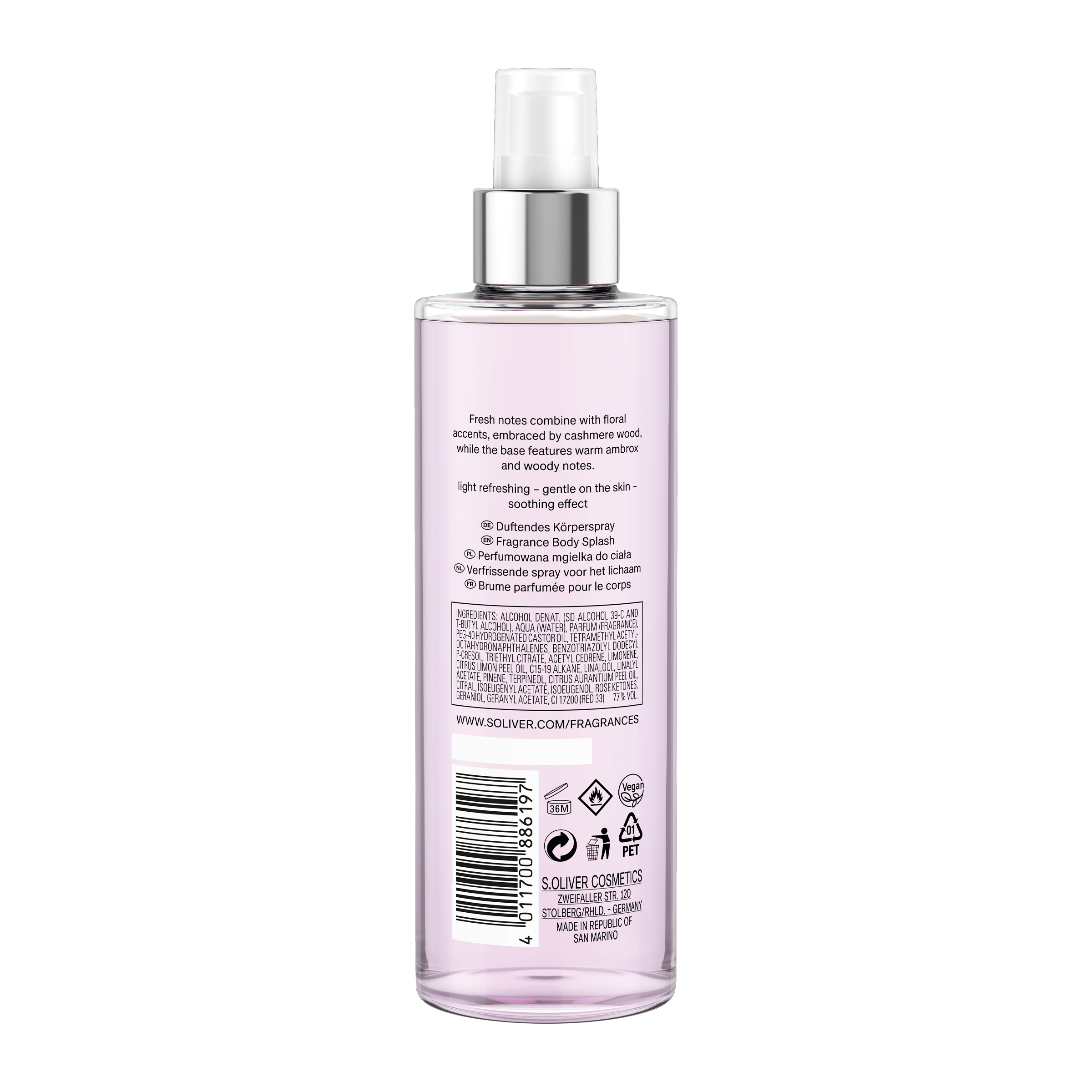 s.Oliver So Pure Women vyzařuje lehkost a zaměřuje se na to podstatné: cítit se dobře ve své kůži a užívat si čistého života. Vůně s.Oliver So Pure Women jemně splývá s pokožkou. Svěží tóny se spojují s květinovými akcenty zasazenými do kašmírového dřeva. Základ přesvědčí hřejivými ambroxovými a dřevitými tóny.