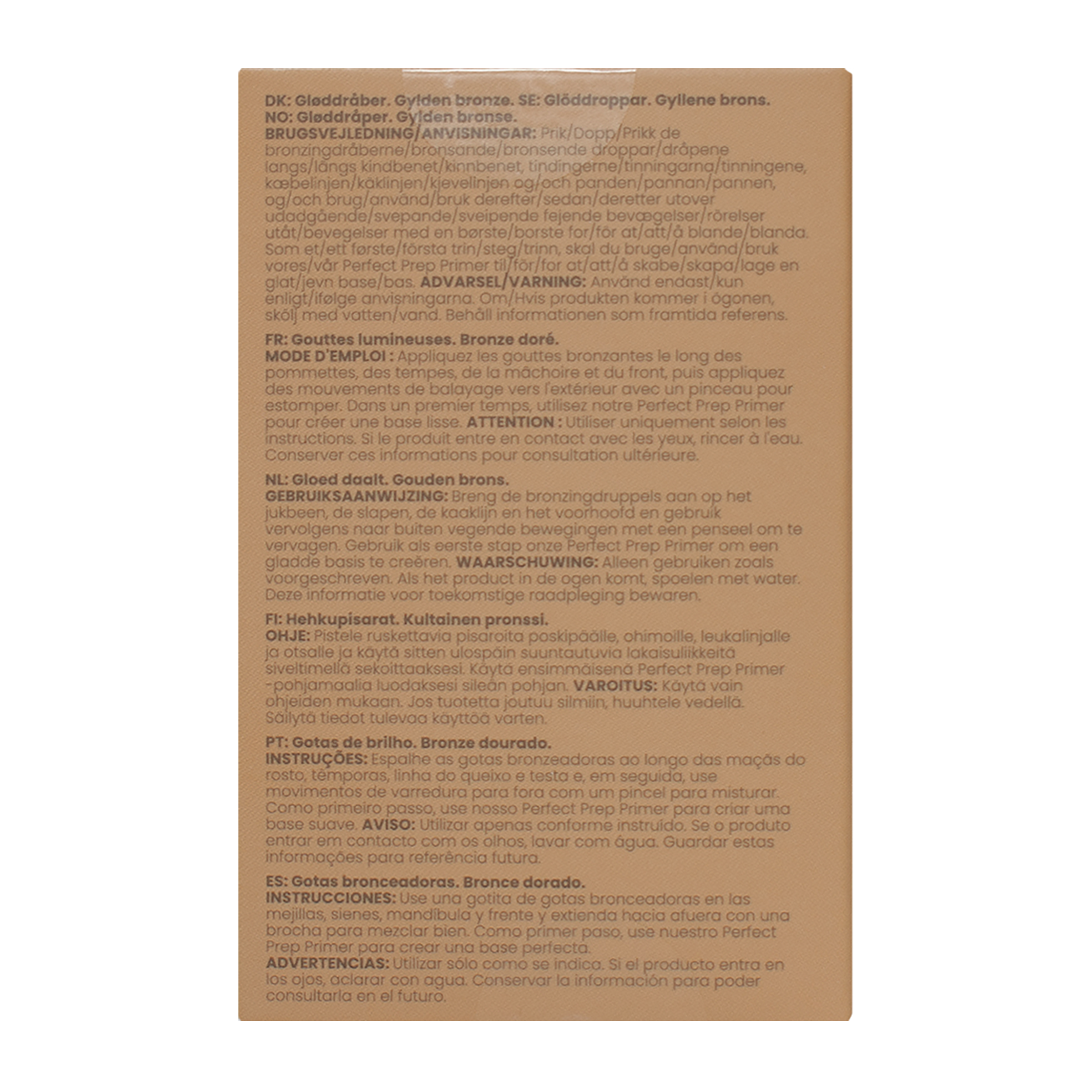 Bronzující kapky Glow Drops dodávají pleti přirozeně opálený vzhled a zároveň zajišťují intenzivní hydrataci. Díky složení s kyselinou hyaluronovou a výtažkem z papáji pleť nejen rozjasňují, ale také ji vyživují a chrání před vnějšími vlivy. Lehká textura umožňuje snadné vrstvení, takže si intenzitu opálení přizpůsobíte podle svých představ. Kapky lze používat samostatně nebo přimíchat do oblíbeného pleťového krému pro jemný bronzující efekt.