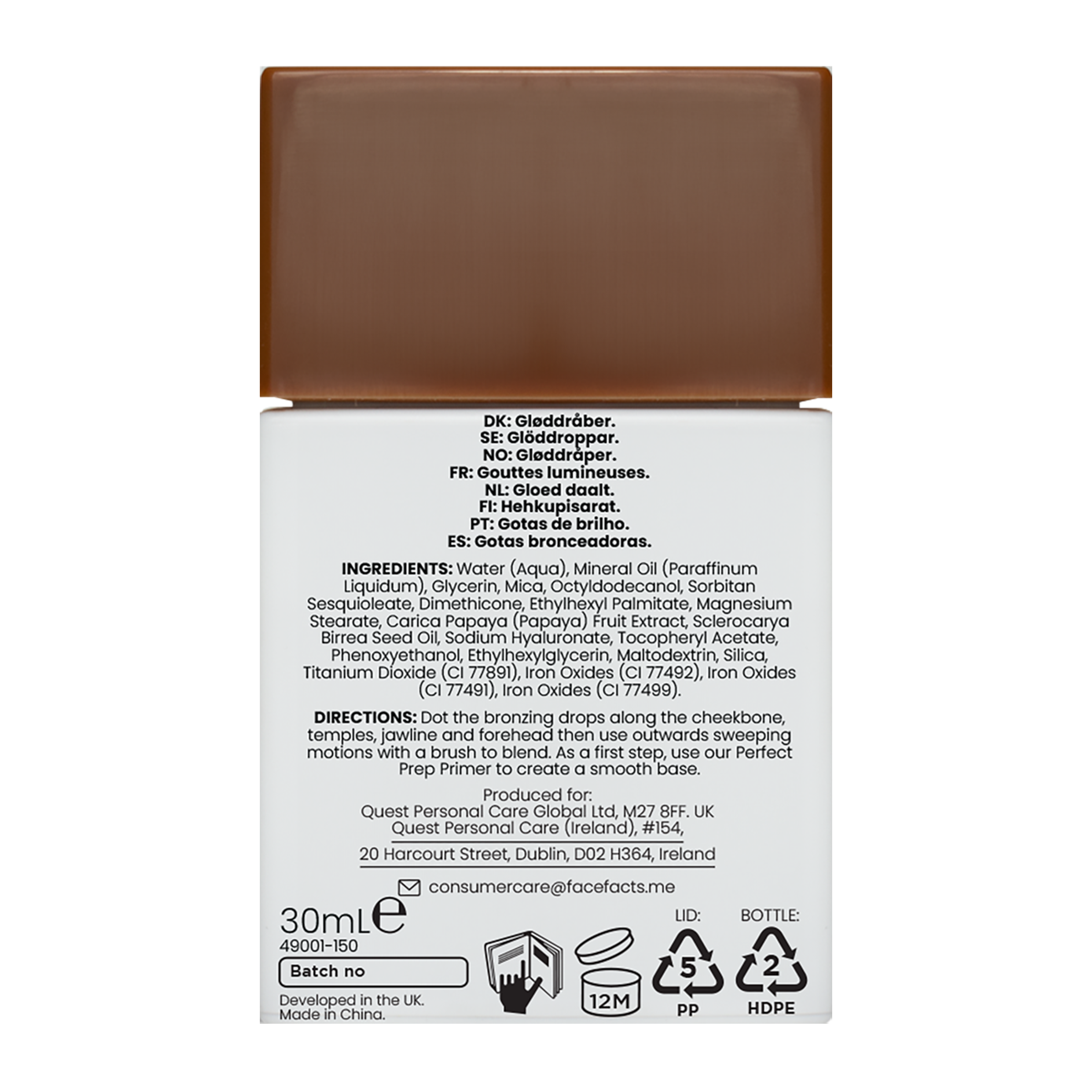 Water (Aqua), Mineral Oil (Paraffinum Liquidum), Glycerin, Mica, Octyldodecanol, Sorbitan Sesquioleate, Dimethicone, Ethylhexyl Palmitate, Magnesium Stearate, Carica Papaya (Papaya) Fruit Extract, Sclerocarya Birrea Seed Oil, Sodium Hyaluronate, Tocopheryl Acetate, Phenoxyethanol, Ethylhexylglycerin, Maltodextrin, Silica, Titanium Dioxide (CI 77891), Iron Oxides (CI 77492), Iron Oxides (CI 77491), Iron Oxides (CI 77499)