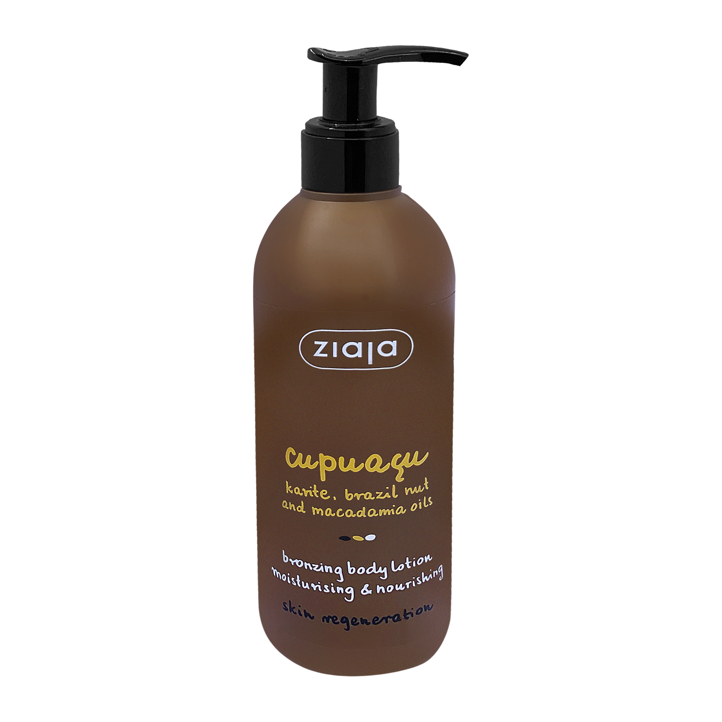 Bronzující hydratační a vyživující tělové mléko s máslem Cupuacu pro všechny typy pokožky. Máslo Cupuacu ze semen amazonského stromu Theobroma grandiflorum s chutnými plody a krásnými květy. Má vysoký obsah nasycených a nenasycených mastných kyselin. Vykazuje pozoruhodné výživné a regenerační vlastnosti. Intenzivně hydratuje pokožku, zjemňuje ji a obnovuje správnou elasticitu a obsahuje přírodní filtr proti UV záření. Rozpouští se při teplotě těla. Bronzující tělové mléko účinně regeneruje lipo-strukturu svrchní vrstvy pokožky, posiluje ochrannou barieru pokožky, důkladně hydratuje a zpružňuje pokožku. Reguluje aktivitu vnitřních vrstev pokožky, změkčuje a vyhlazuje. Samoopalovací látka Dihydroxyaceton je použita v bezpečné bronzující koncentraci, dodává pokožce jemný opálený odstín. Obsahuje 96% složek přírodního původu.