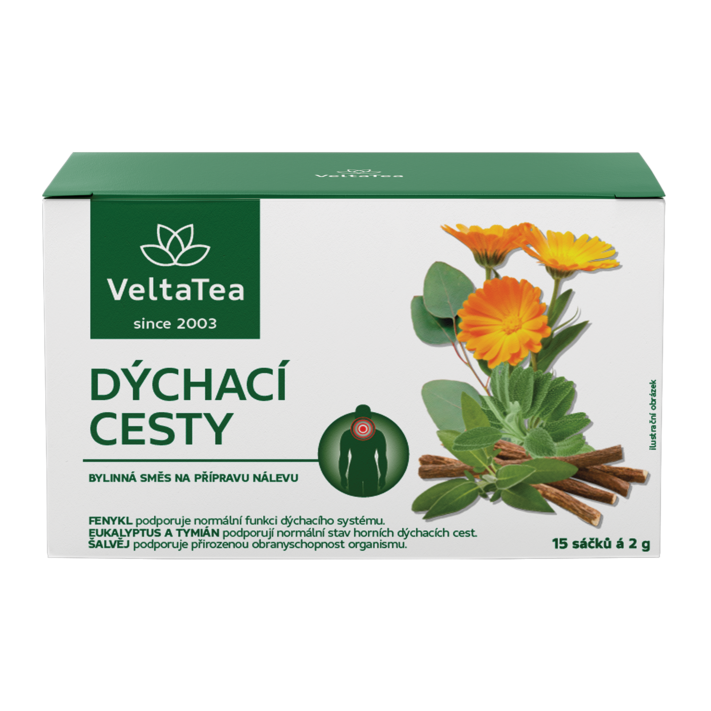 Bylinná směs na přípravu nálevu podporující funkcí dýchacího systému, normální stav horních dýchacích cest a přirozenou obranyschopnost organismu.