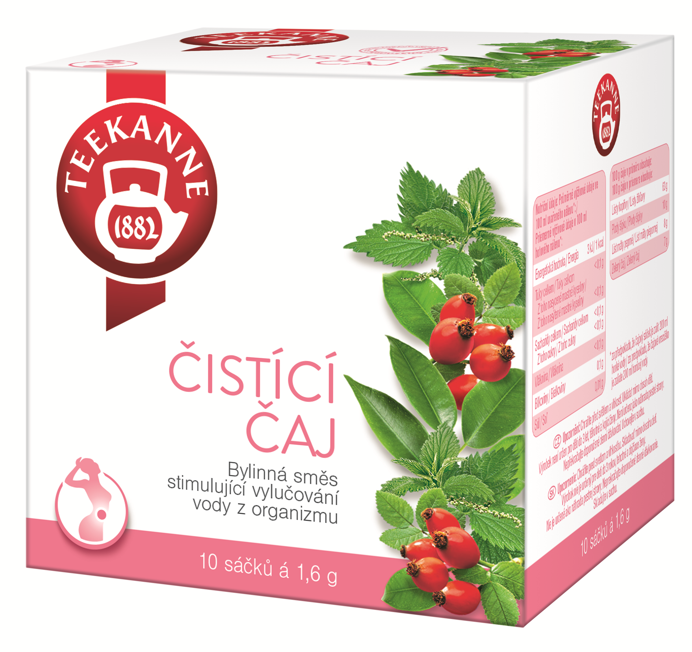 Čistící čaj Hlavní složky bylinné směsi jsou: Listy kopřivy stimulují vylučování vody z organizmu a podporují čištění organizmu. Zelený čaj stimuluje degradaci tuků a podporuje vylučování vody z těla. Listy máty peprné přispívají k normální funkci střevního traktu. Šípek přispívá k normální funkci ledvin a močového měchýře. Bylinné funkční čaje od TEEKANNE vycházejí z tradičních bylin a jejich účinky jsou již po staletí dobře známy. Příjemná aromatická chuť bylin je to, co dělá z čajů TEEKANNE, ideálního společníka již více než 120 let.