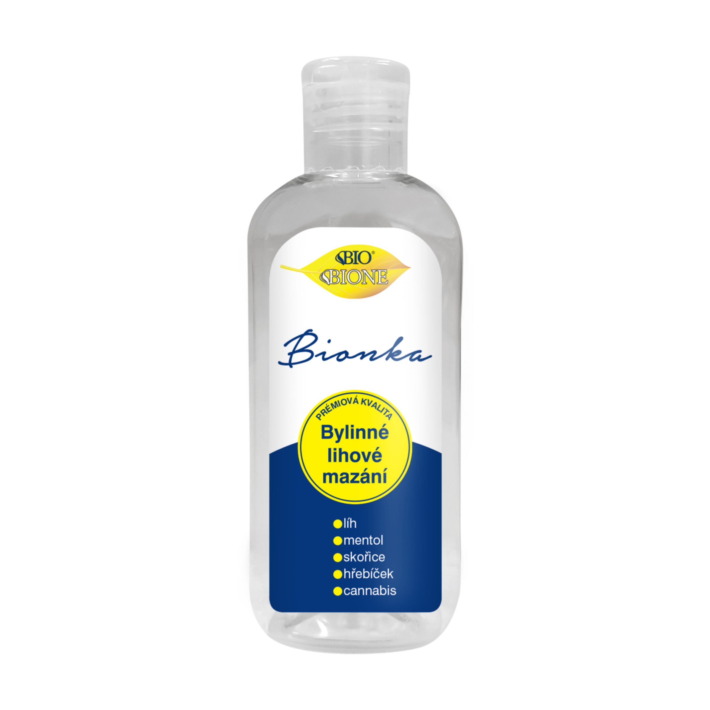 Tradiční lihově mentolové mazání se silicemi a s extraktem Cannabis. Masážní tonikum k prokrvení pokožky v oblasti bolavých kloubů, na unavené a těžké nohy, při svalovém zatuhnutí, pro masáže natažených šlach a při různých zhmožděninách. Masáží se pokožka i ostatní tkáně prokrví a prohřejí, uvolní se svalový tonus. BIONKA se používá k inhalaci, zředěná vodou jako kloktadlo, k masáži spánků při bolestech hlavy, jako aromatická přísada do koupele, ev. jako voda po holení, k chladivé a deodorační masáži chodidel. S moderním extraktem Cannabis. PRÉMIOVÁ KVALITA