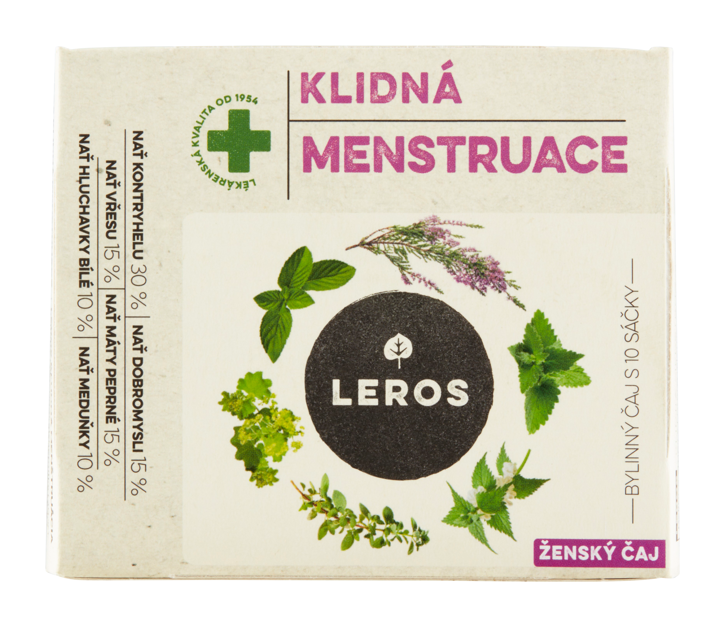 Bylinná směs s kontryhelem, dobromyslí, mátou a vřesem na celkovou podporu zdraví ženského organismu v každé části měsíce. Síla bylin pro ženy Bylinná směs obsahuje ,,ženskou bylinu" kontryhel, který podporuje dobrý pocit před menstruací a během ní a osvěžuje tělo. Hluchavka a řebříček přispívají k (před)menstruačnímu komfortu, dobromysl a máta podporují normální trávení.