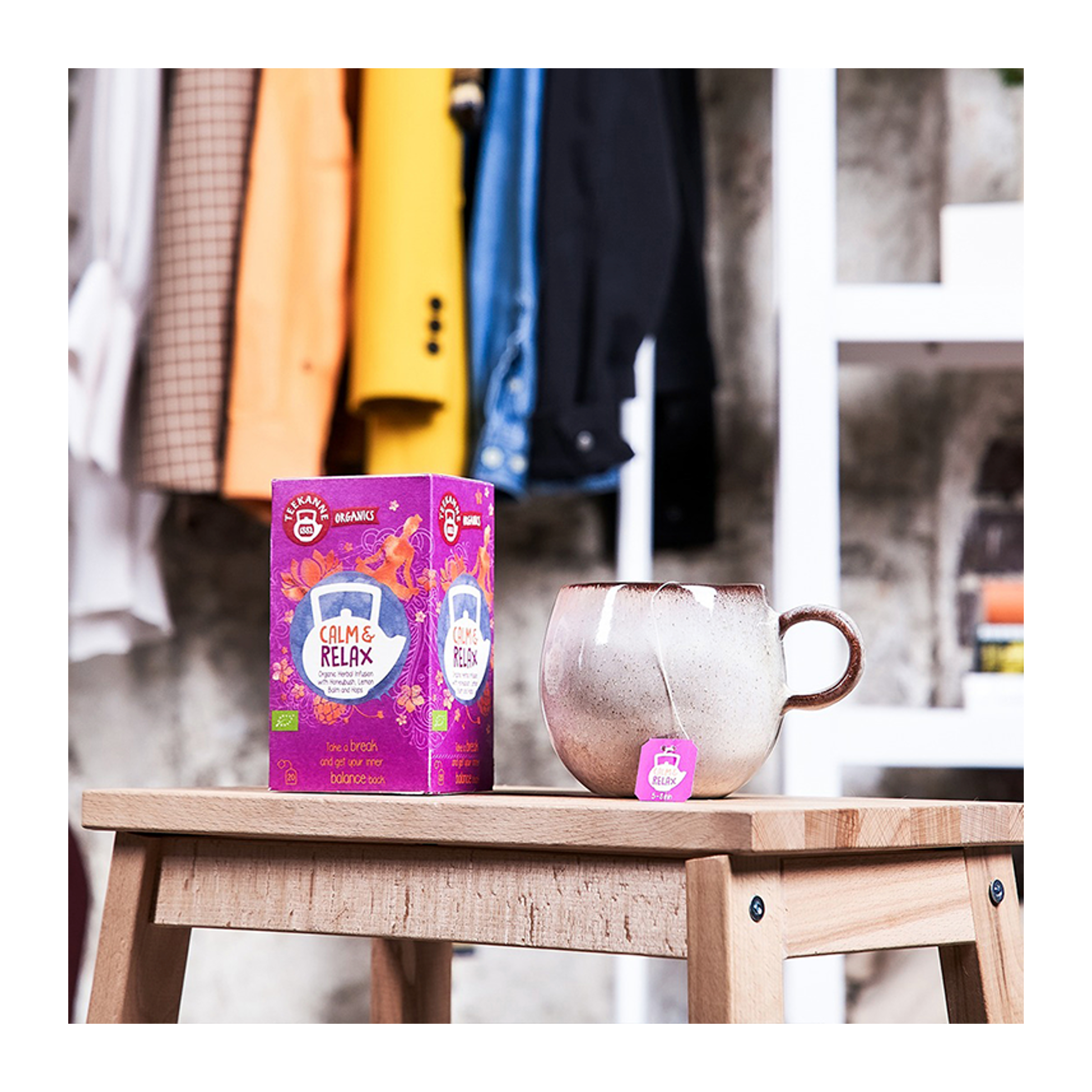 Teekanne Organics Calm & Relax je jemný BIO bylinný čaj s medovým keřem, meduňkou a chmelem. Udělejte si přestávku a získejte zpět svou vnitřní rovnováhu a klidnou mysl. Snažte se odpočívat a nechte volný průběh příjemným myšlenkám. Dokonalým společníkem Vám bude čaj Calm & Relax. Zastavte se a vychutnejte si příjemně lahodný šálek čaje. Teekanne Organics jsou ty nejlepší čaje v BIO kvalitě v inovativních trendy příchutích, což zaručí rozmanitost chutí v každém šálku - aby byl každý den o doušek lepší.