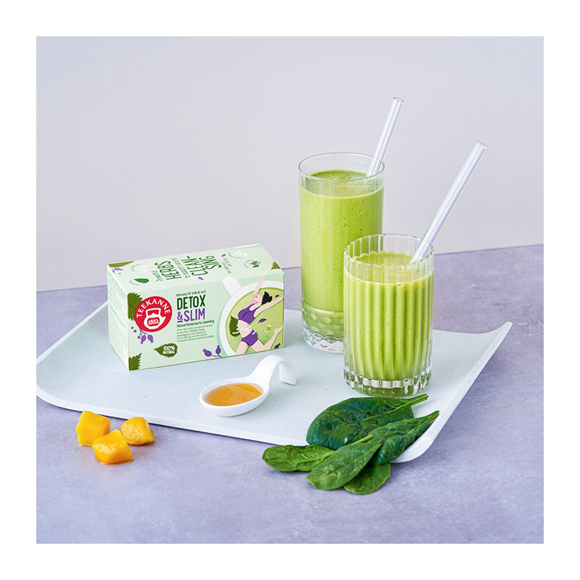Teekanne Detox & Slim je uklidňující bylinný čaj, s čajem zeleným, který napomáhá přirozenému procesu očisty a je ideálním společníkem při půstu, nebo když se snažíte snížit hmotnost. Tento čaj, silná kombinace zeleného čaje a kopřivy, podporuje přirozenou očistu. Kopřiva podporuje vylučovací schopnost ledvin. Obsahové látky zeleného čaje (katechiny) pomáhají zabránit hromadění tuků v těle. Zelený čaj rovněž pomáhá vylučování vody z těla. Čaj navíc podporuje zdravé stravování a psychickou pohodu, rozmanitě pokrývá každodenní požadavky na pitný režim, neobsahuje cukr a nemá v podstatě žádné kalorie. Získejte dobrý pocit v těle a užijte si šálek po šálku.