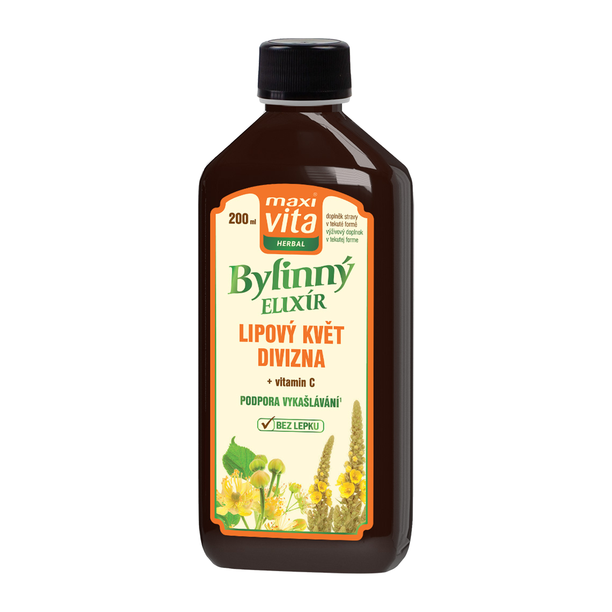 Bylinný elixír Herbal na podporu vykašlávání lipový květ, divizna + vitamin C, doplněk stravy