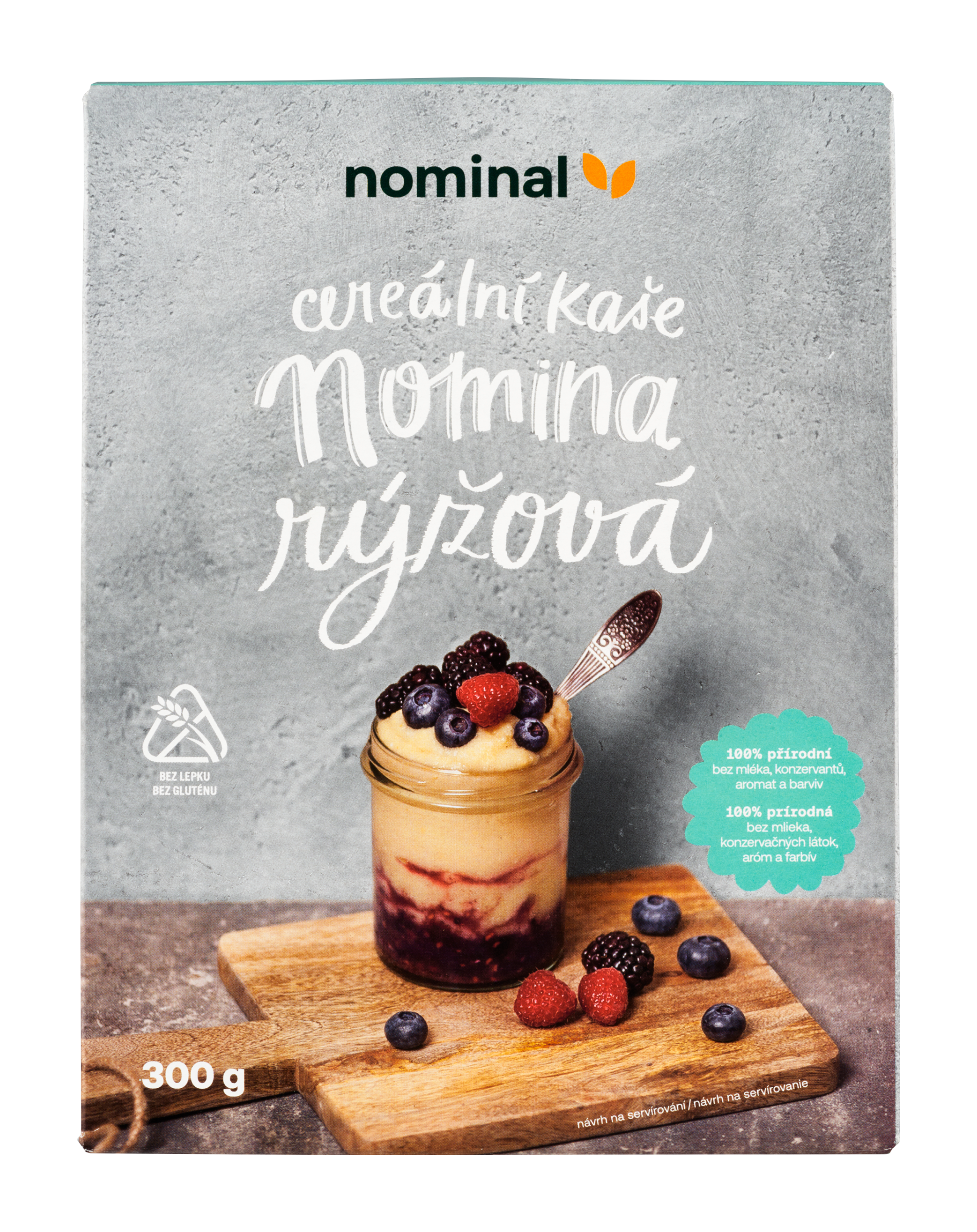 Kaši si můžete připravit z mléka nebo z celé řady rostlinných mlék. Na sladko? Dochucovat lze medem nebo vaším oblíbeným rostlinným sirupem (javorový, datlový, čekankový...). Pokrm lze doplnit také čerstvým či sušeným ovocem, ořechy, semínky, kakaem, skořicí, máslem nebo kvalitním olejem (lněný, makový, olivový...). Raději na slano? Kaši lze podávat i jako slaný pokrm (se sýrem, avokádem, semínky, bylinkami...). Cereální kaše Nomina jsou výrobky s vysokou nutriční hodnotou. Vzhledem k jejich lehké stravitelnosti a snadné přípravě jsou ideální i jako součást sportovního jídelníčku. Představují tak moderní a zdravý způsob výživy, určený pro všechny věkové kategorie. Rýže je druhou nejrozšířenější obilovinou na světě. Hlavní živinou v rýžovém zrnu jsou sacharidy (kolem 80 %). Téměř všechny jsou v rýži ve formě komplexních polysacharidů. Rýže je tak vynikajícím a dobře stravitelným zdrojem energie. Nejen pro naši fyzickou aktivitu, ale také pro náš mozek.