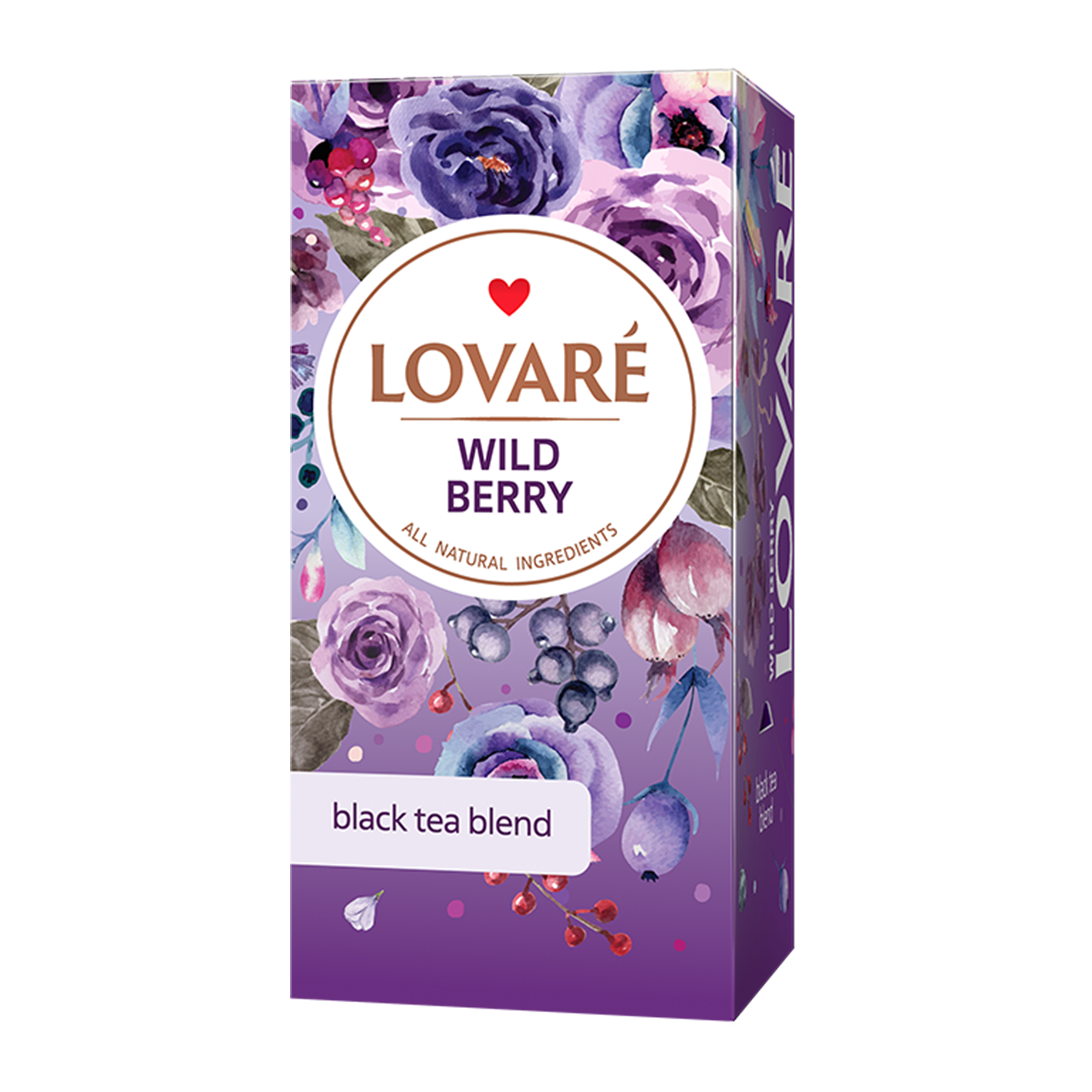Cejlonský černý dlouholistý čaj, drcené plody ve stejném poměru 5 % (jahody, šípky), přírodní aroma lesních plodů