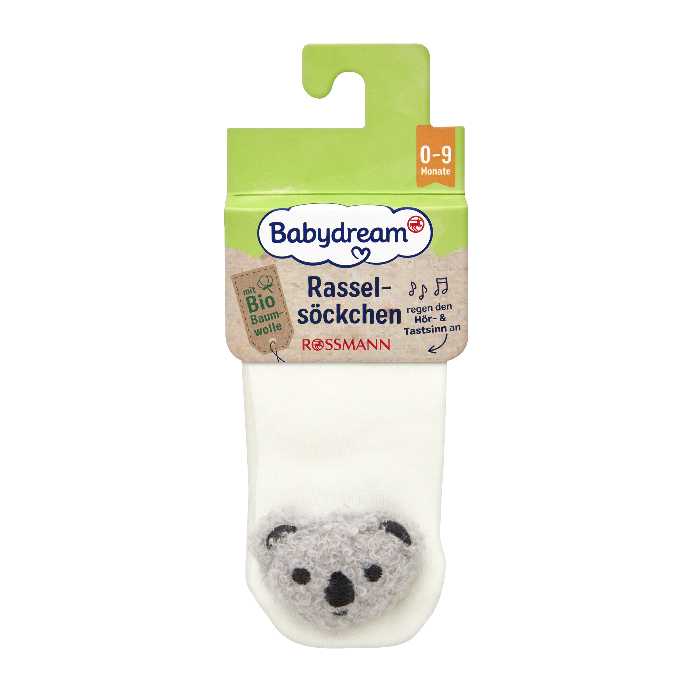 Ponožky: 86 % bavlna, 13 % polyamid, 1 % elastan; Chrastítko a náplň: 100 % polyester