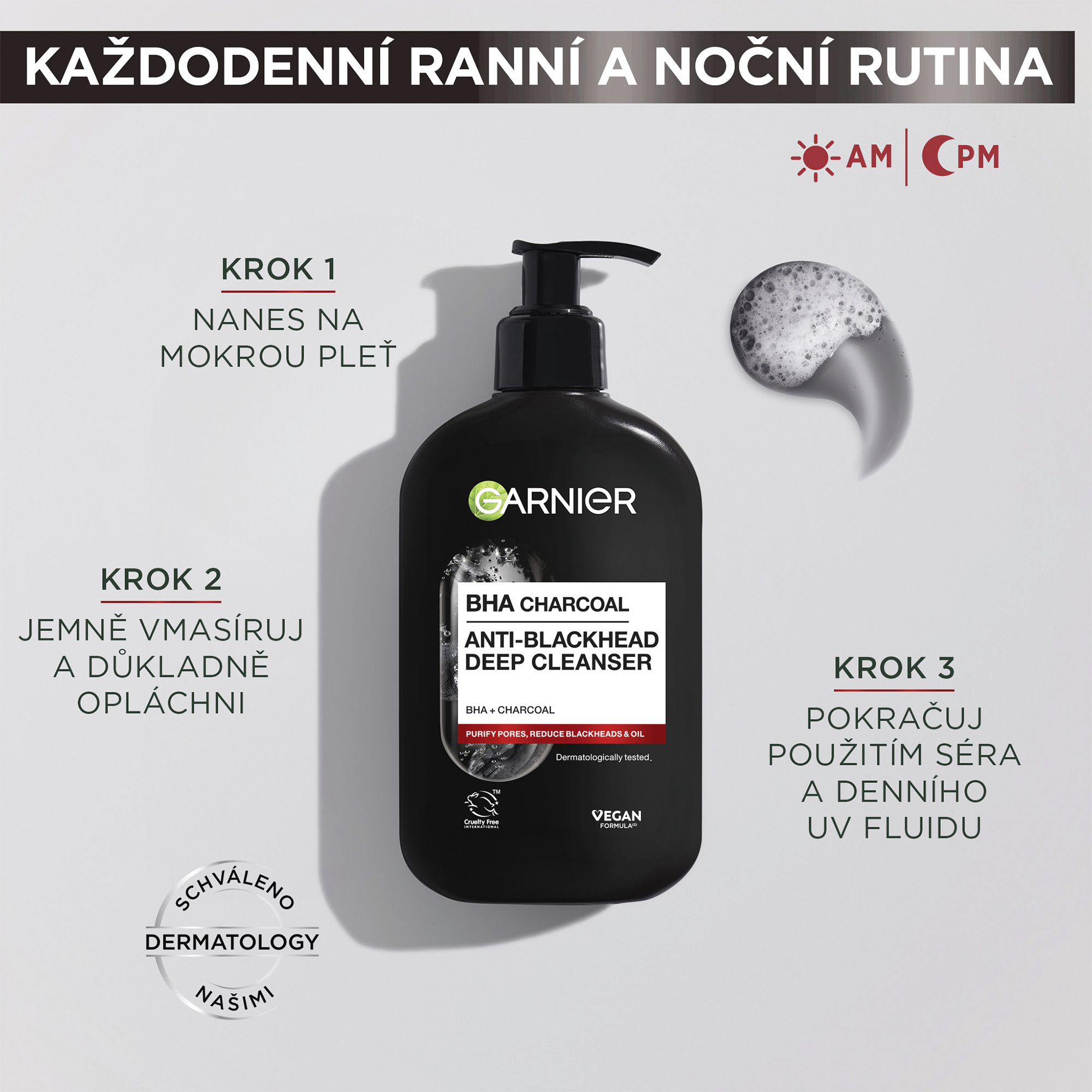 Tento čistící gel, obohacený o BHA a AKTIVNÍ UHLÍ přírodního původu, čistí pokožku, redukuje pupínky a černé tečky a zabraňuje jejich znovuobjevení pro čistou a matnou pleť.