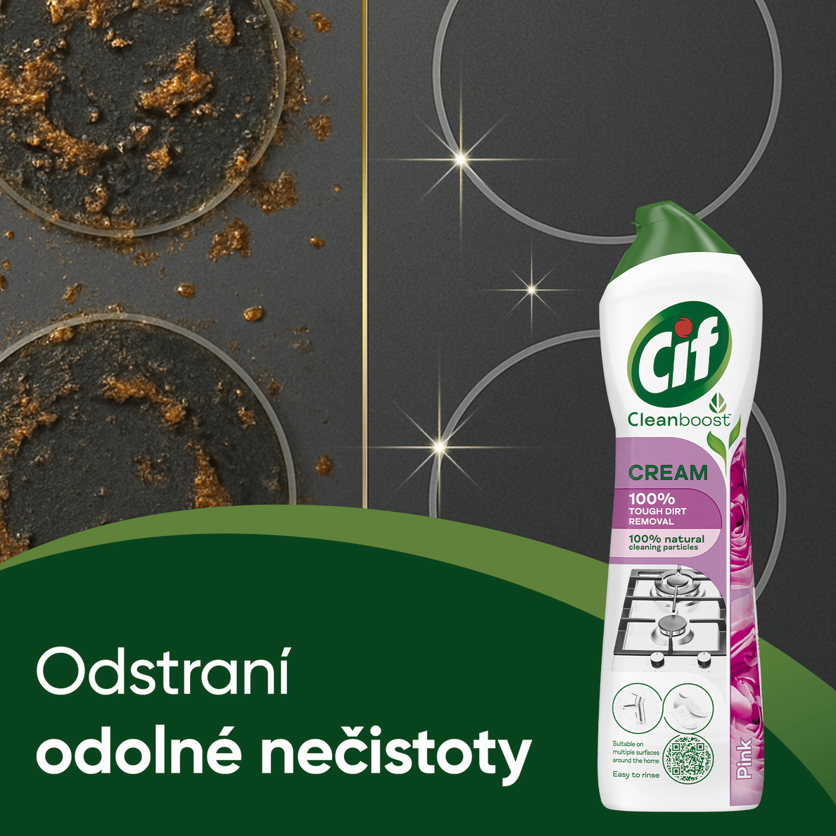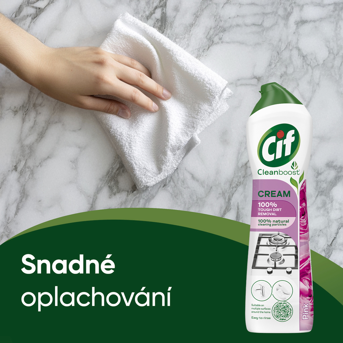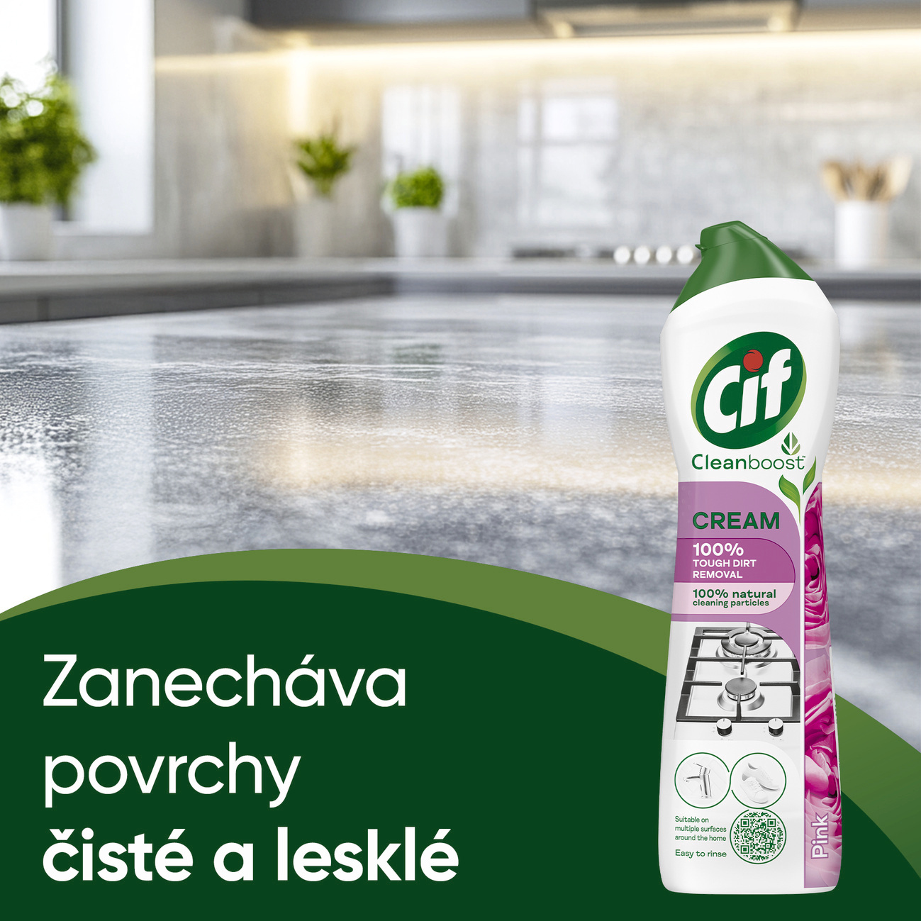 Krém na čištění Cif Pink přináší spojení silného účinku, jemné péče o povrchy a příjemné květinové vůně. Tento univerzální krémový čistič si hravě poradí s připáleným tukem, vodním kamenem i zašlými skvrnami, aniž by poškodil citlivé materiály. Díky přírodním čisticím částicím čistí do hloubky a zároveň respektuje vaši domácnost i přírodu. Využijete ho v kuchyni, koupelně i na místech, kde byste to nečekali – třeba při obnově vzhledu zahradního nábytku nebo obuvi.