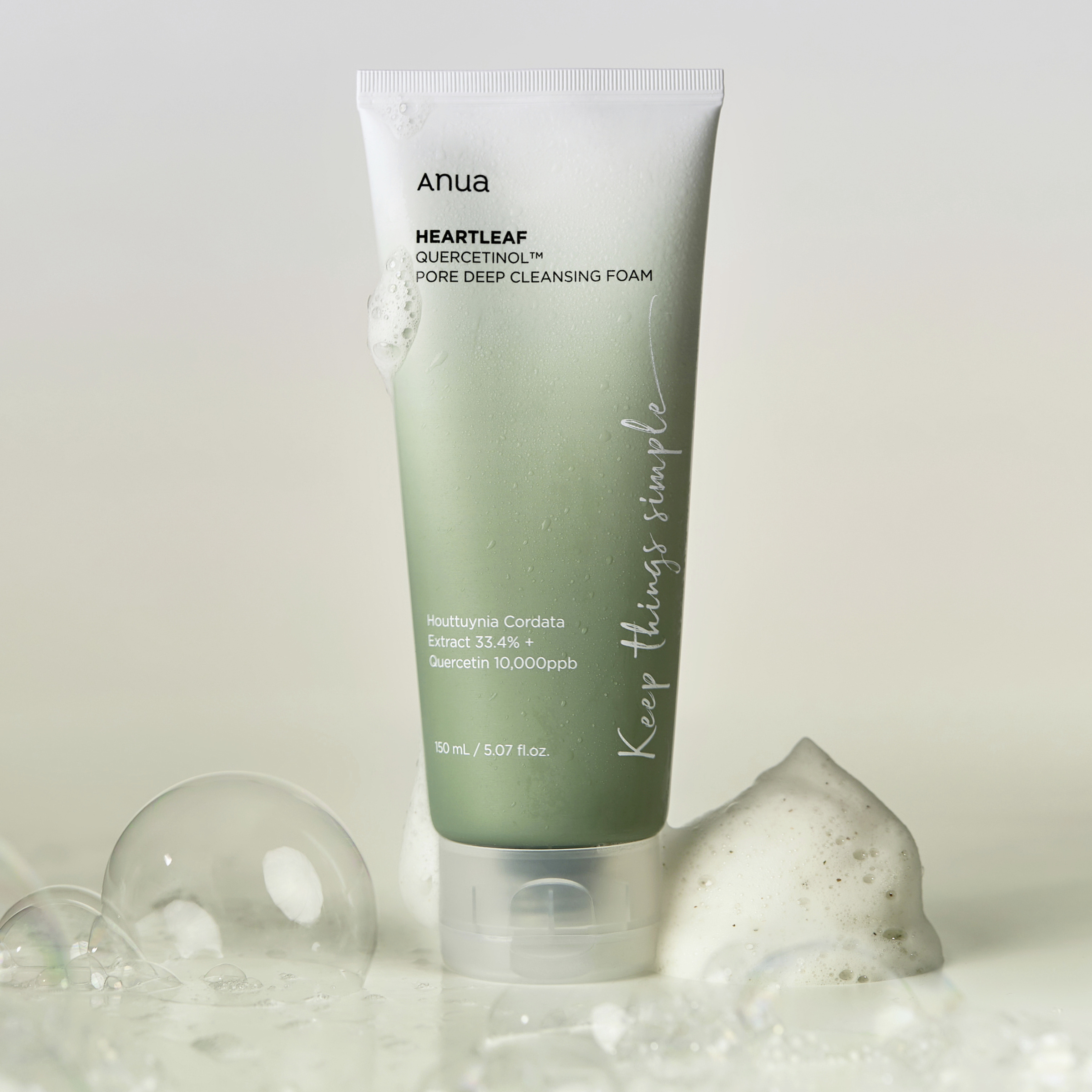 Jemná lehká čisticí pěna, která odstraňuje odumřelé kožní buňky, přebytečný kožní maz a čistí póry a zároveň udržuje pleť hydratovanou. Obsahuje quercetinol, který se získává z listů toulně srdčité (Houttuynia Cordata). Quercetinol účinně léčí záněty a zklidňuje pleť.