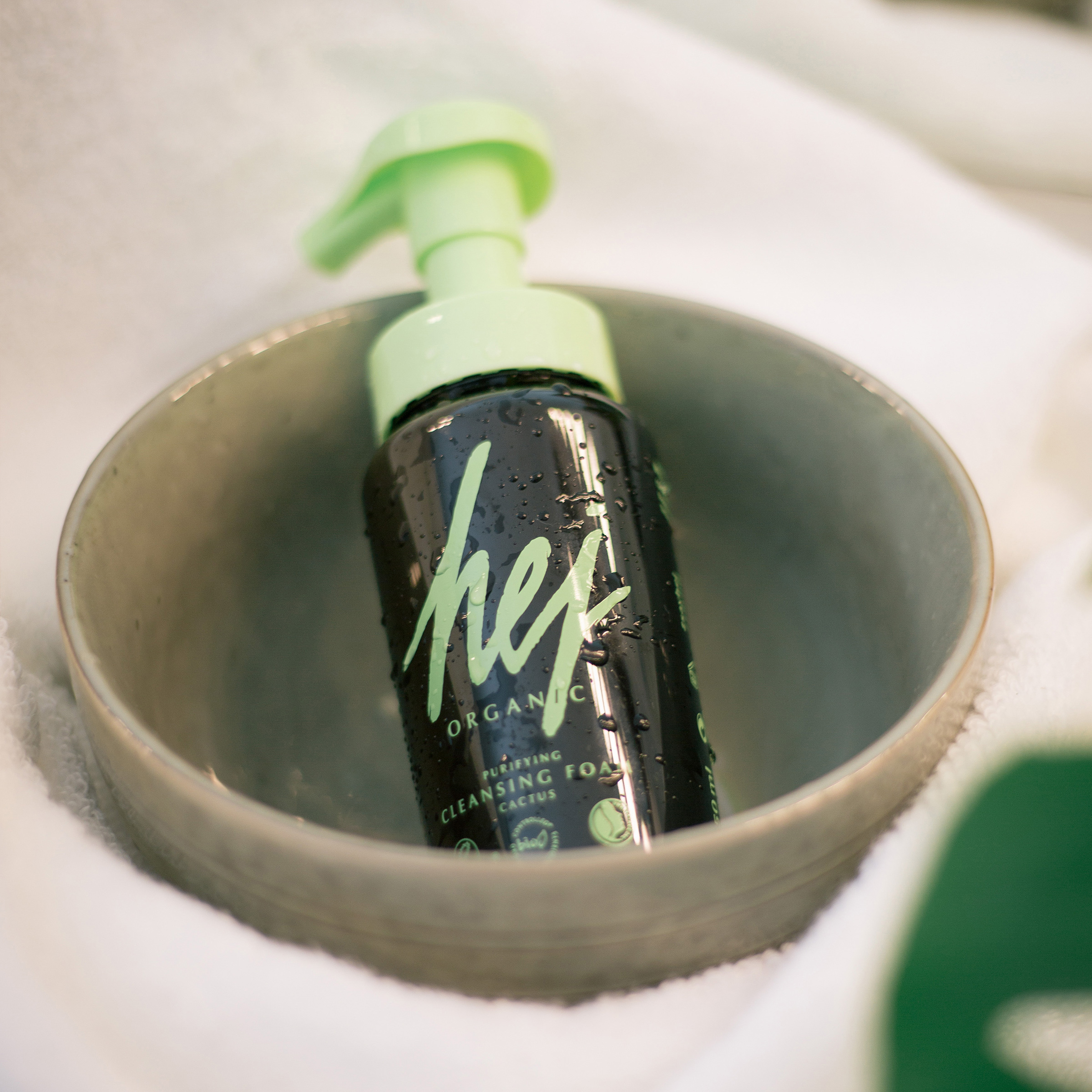 Hej Organic čistící pleťová pěna důkladně čistí a zanechává obličej zářivý a osvěžený. Díky přidanému extraktu z grepu a kaktusovému oleji bude vaše pleť vyživená a pružná. Zelené produkty Hej Organic obsahují olej z opuncie (kaktusu), který je jedním z nejvzácnějších a nejluxusnějších přírodních olejů, které se v kosmetice používají.