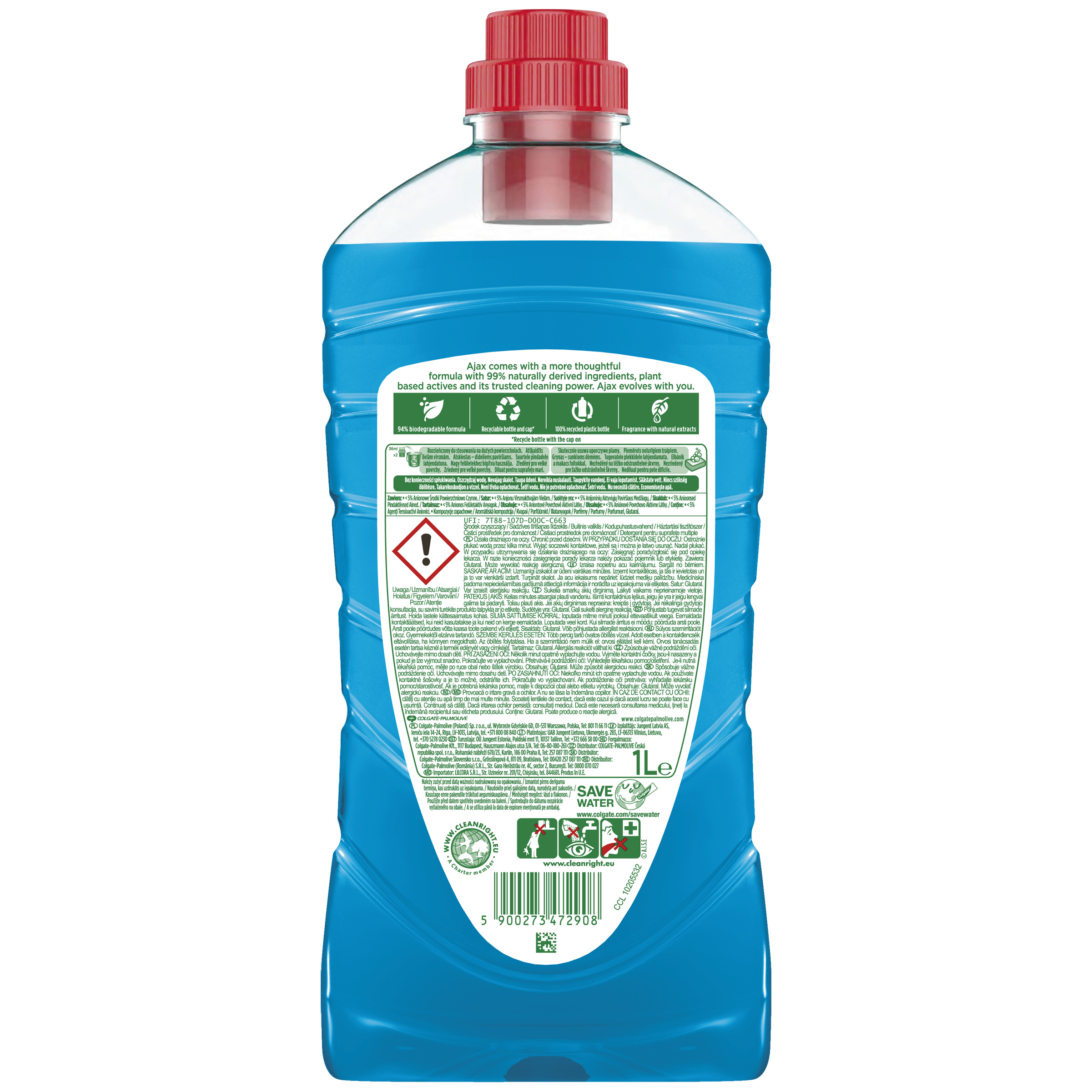 Zanechte své povrchy lesklé, čisté a svěže vonící s víceúčelovým čističem Ajax Fete des Fleurs Lagoon. Víceúčelový čistič, který je vyroben z esenciálních olejů a vůně s přírodními výtažky, odstraňuje zápach a zanechává 24 hodin přirozené svěžesti po celém vašem domě. Čistič povrchů navíc přináší důvěryhodnou 100% čisticí sílu Ajaxu a se špínou si poradí okamžitě! A je účinný i ve studené vodě! Vzhledem k tomu, že je tento víceúčelový čistič ohleduplný, je veganský, dermatologicky testovaný a vyrobený ze složek 99 % přírodního původu. Má také 94% biologicky odbouratelné složení a dodává se ve 100% recyklované plastové lahvi. Když je láhev prázdná, můžete ji recyklovat i s nasazeným uzávěrem. Dopřejte svému domovu svěžest, kterou si zaslouží, s přípravkem Ajax.