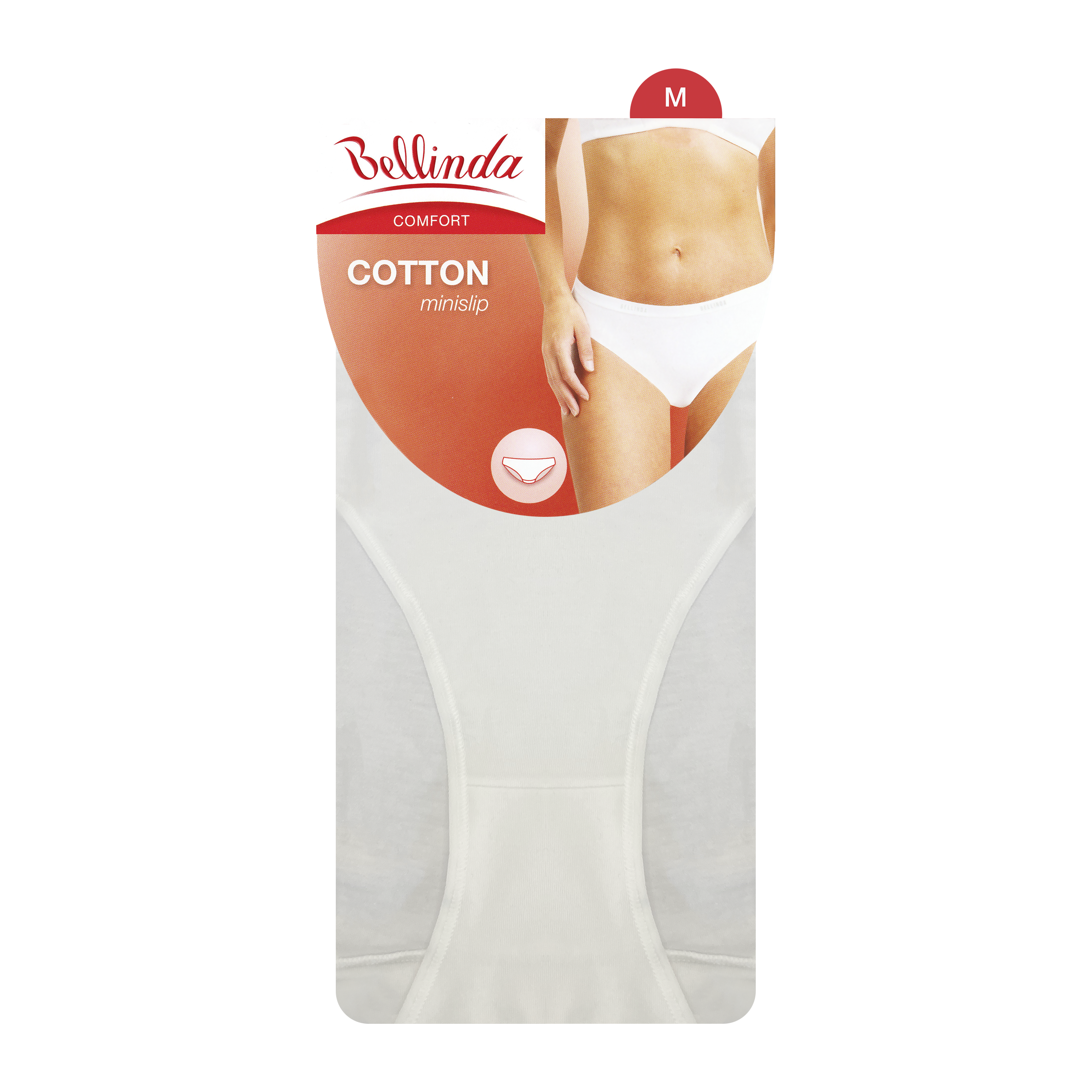 Bílé dámské kalhotky Bellinda Cotton Minislip. Bavlněné kalhotky s elastanem. Elegantní lem s logem Bellinda. Bez rušivé vnitřní etikety. Velikost M.