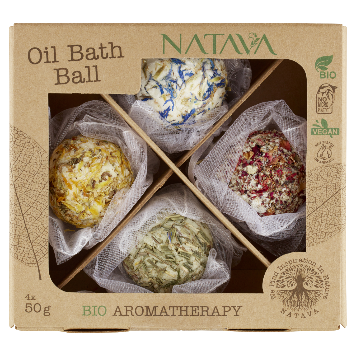 NATAVA olejová koule do koupele - Dárková sada obsahuje jednu od každé vůně - Citronová tráva/ Růže/ Chrpa polní /Měsíček lékařský. Olejové koule do koupele s příjemnou a dlouhotrvající vůní citronové trávy, růže, chrpy či měsíčku přináší relaxaci a uvolnění těla při koupeli. Obsahují zvláčňující složky, které Vaši pokožku zjemní a hydratují. Obsažené bylinné kompozice během teplé koupele roztahují póry pokožky a snáze do ní pronikají. Navodí pocit svěžesti a odpočinku. Koule vedle dalších prospěšných složek obsahují také bambucké a kakaové máslo, čímž zajišťují pokožce důslednou hydrataci a dodávají jí vitamín E.