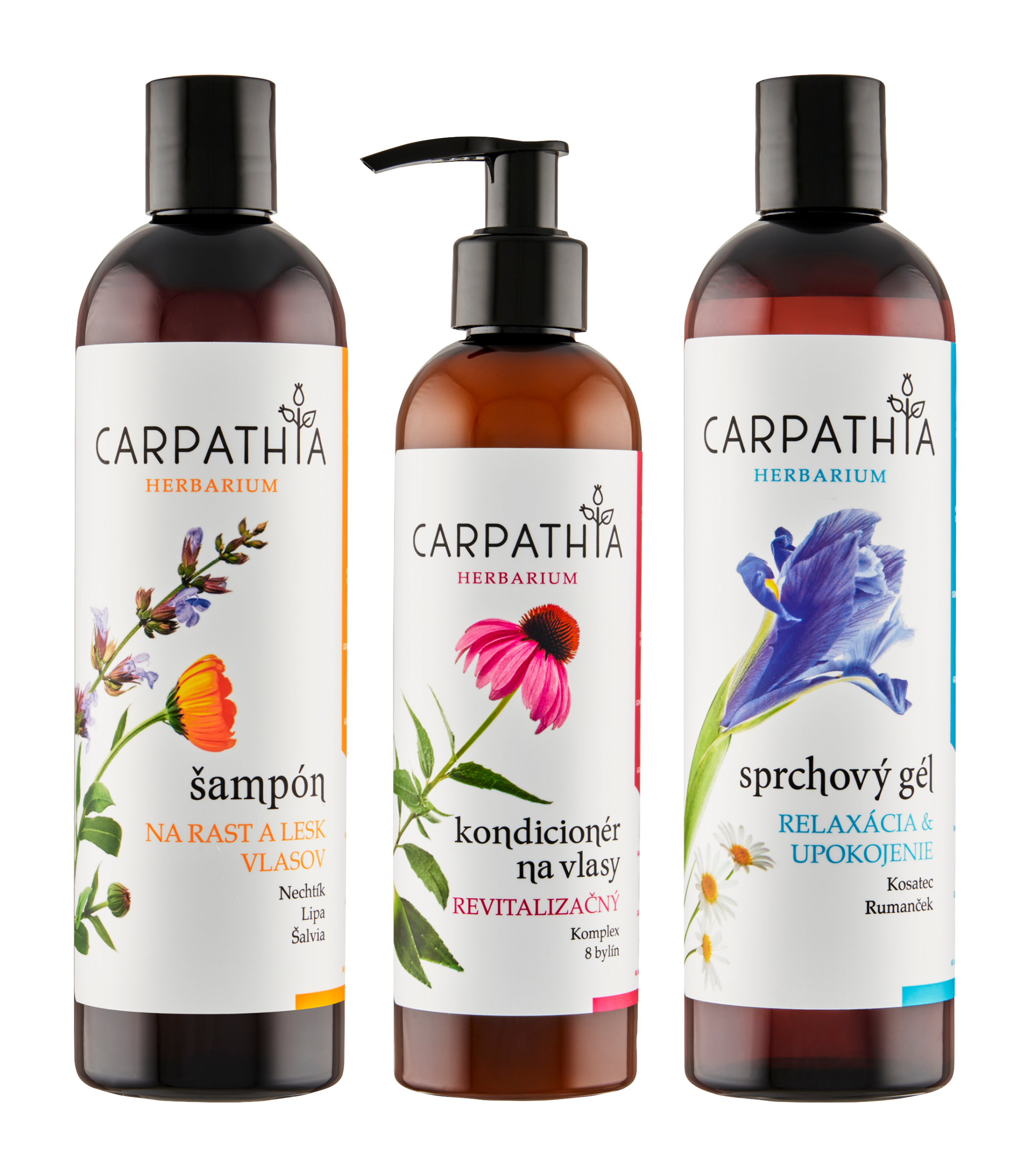 Šampon na růst a lesk vlasů s bylinnými výtažky z měsíčku, lípy a šalvěje pro časté mytí vlasů zvyšuje pružnost a lesk vlasů, reguluje činnost mazových žláz. Při pravidelném používání šamponu budou vaše vlasy hebké a zdravé. Revitalizační kondicionér na všechny typy vlasů s bylinnými výtažky z 8 bylin: Aloe vera, Echinacea purpurová, Heřmánek pravý, Měsíček lékařský, Pupečník asijský, Meduňka lékařská, Vilín virginský, Lípa malolistá vytvářejí účinný antiiritační komplex. Při pravidelném používání mají vlasy zdravý vzhled, snadno se rozčesávají, jsou lesklé a zářivé. Relaxace Upokojení sprchový gel s vůní kosatce a heřmánku určený pro každodenní používání šetrně umyje pokožku, rozjasní váš den a nabije vás energií.