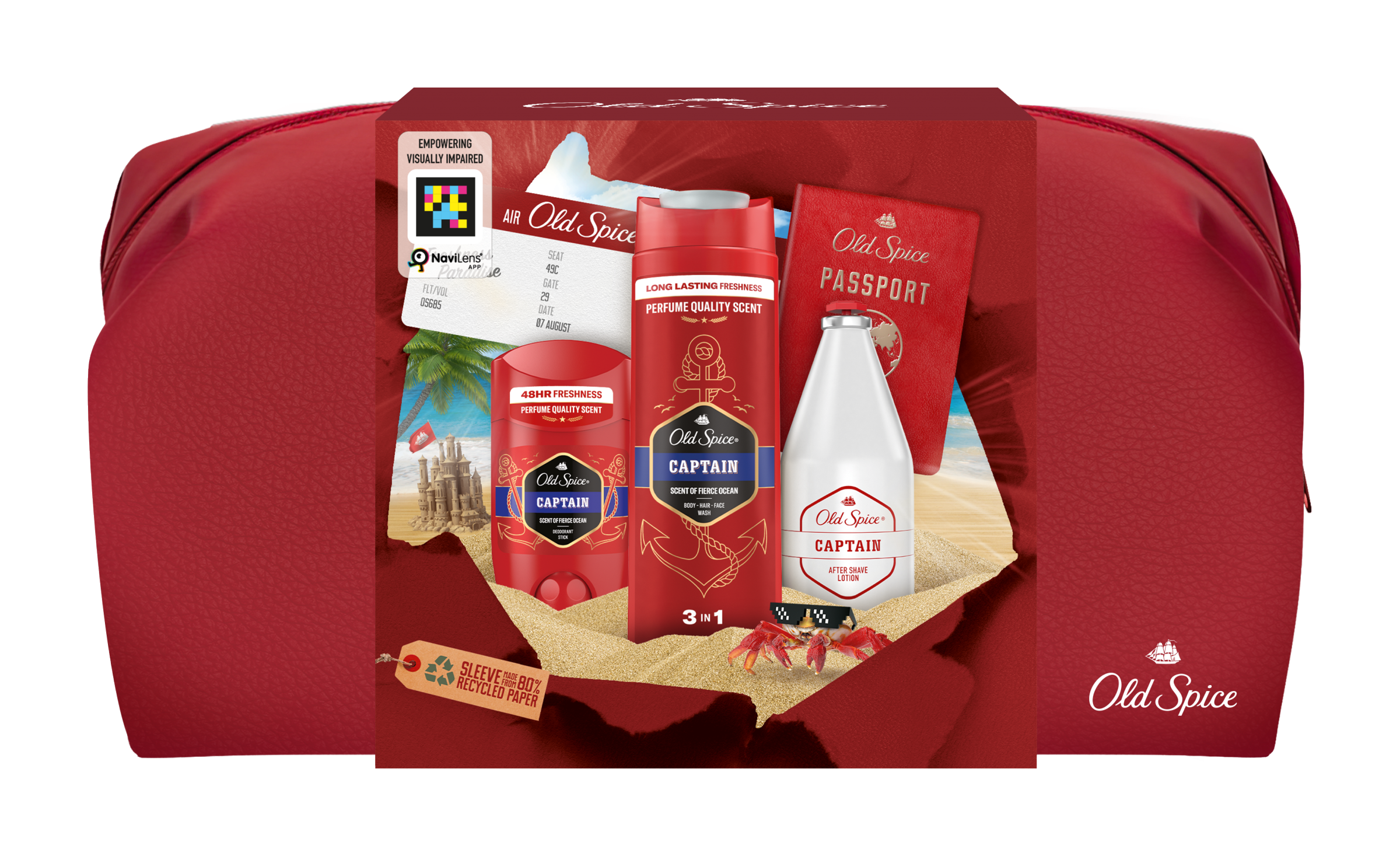 - Tato dárková sada obsahuje znovu použitelnou kosmetickou tašku Old Spice