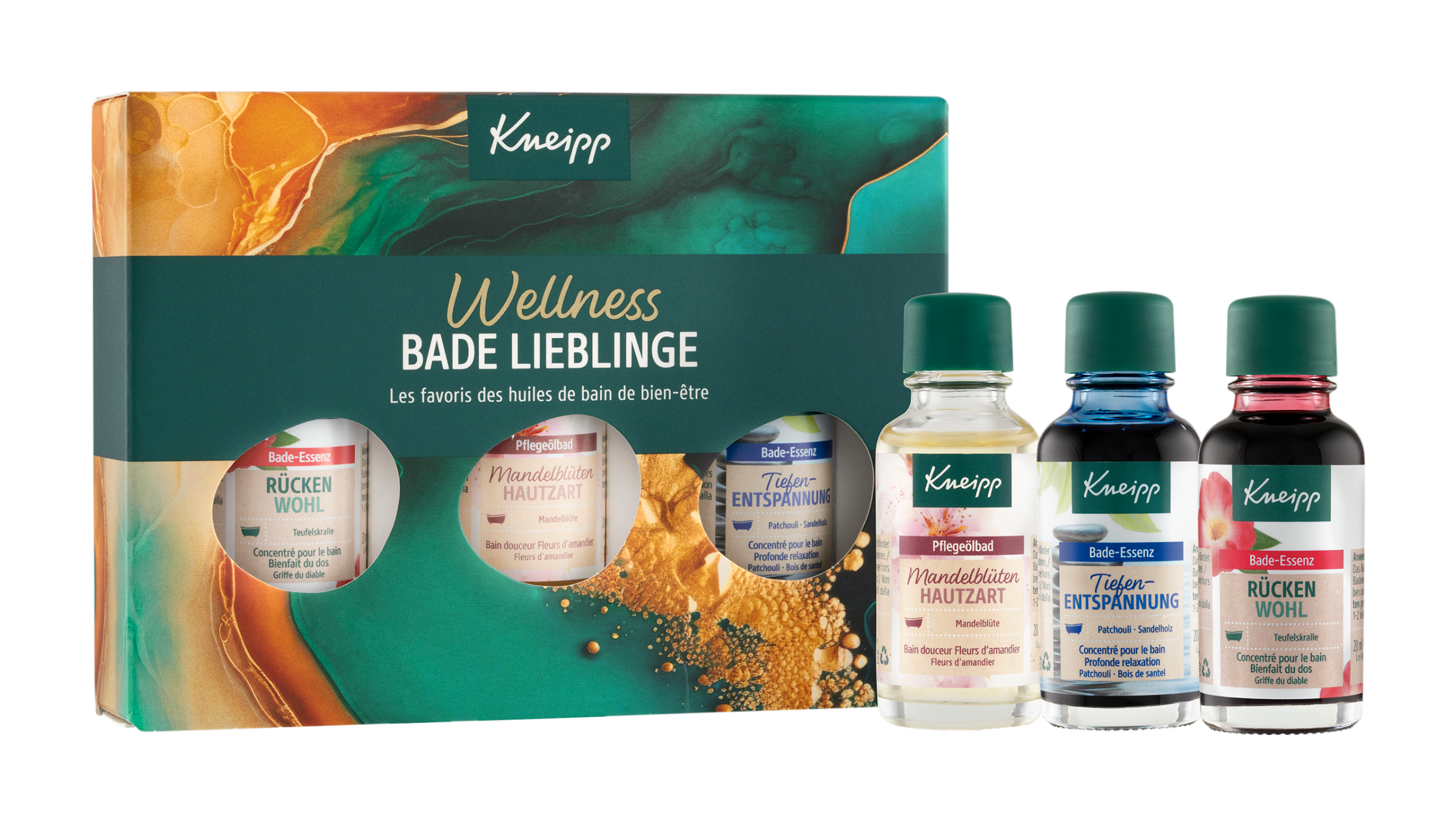 Krásný dárek pro nejrůznější příležitosti. Dárková sada nejoblíbenějších koupelových olejů značky Kneipp má atraktivní balení a uvnitř najdete 3 malé lahvičky koupelových olejů s přírodními výtažky a esenciálními oleji. Každou můžete použít až na 2 relaxační koupele. Koupelový olej Hluboké uvolnění má zklidňující vůni pačuli, exotického dřeva a pryskyřice benzoe. Při bolesti zad a kloubů pomáhá koupel s olejem Čertův dráp, jak se říká sukulentu Harpagophytum Procumbens kvůli tvaru jeho plodů. Použité výtažky z jeho kořenů mají uvolňující účinky na svaly a klouby. Koupelový olej Mandlové květy vás okouzlí příjemnou vůní a pokožku zjemní pečující mandlový olej. Koupelové oleje Kneipp neobsahují složky živočišného původu, jde proto o dárek vhodný i pro vegany. Výrobky jsou bez mikroplastů, parafínů, silikonů a minerálních olejů.