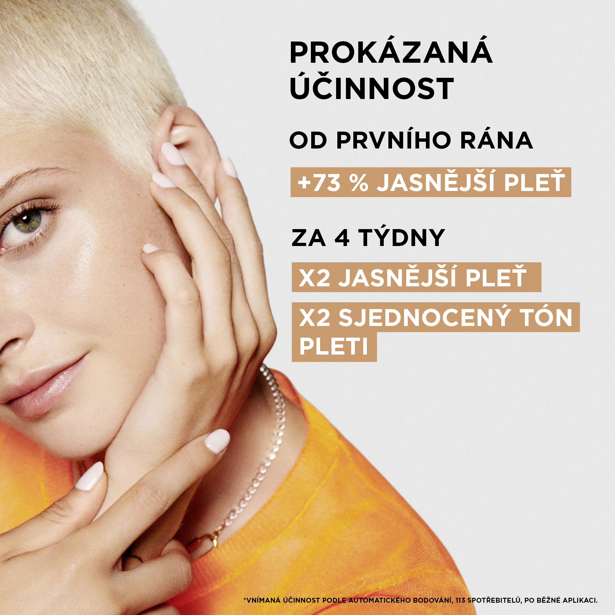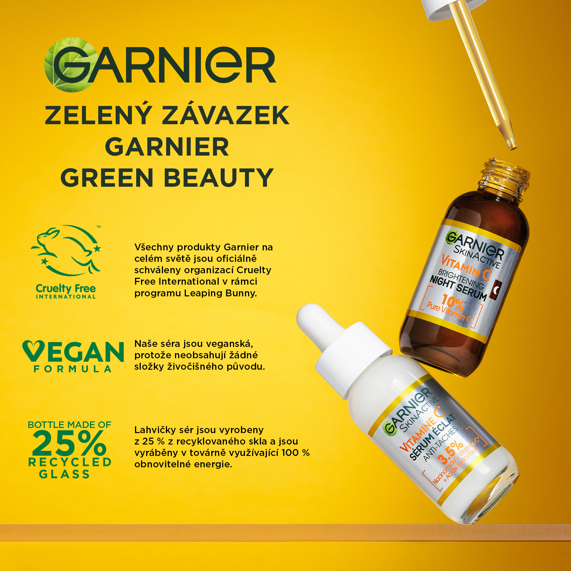 Je vaším cílem zářivá pleť plná přirozeného, vnitřního jasu? Sérum s vitaminem C Garnier Skin Naturals Vitamin C Super Glow Serum vám toho pomůže dosáhnout už za 6 dní. Má silně rozjasňující účinky, a zbaví tak váš obličej mdlého a unaveného vzhledu. Navíc pomůže pleť barevně sjednotit a sníží viditelnost pigmentových skvrn. To vše, aniž by za sebou zanechalo mastný či lepivý film.