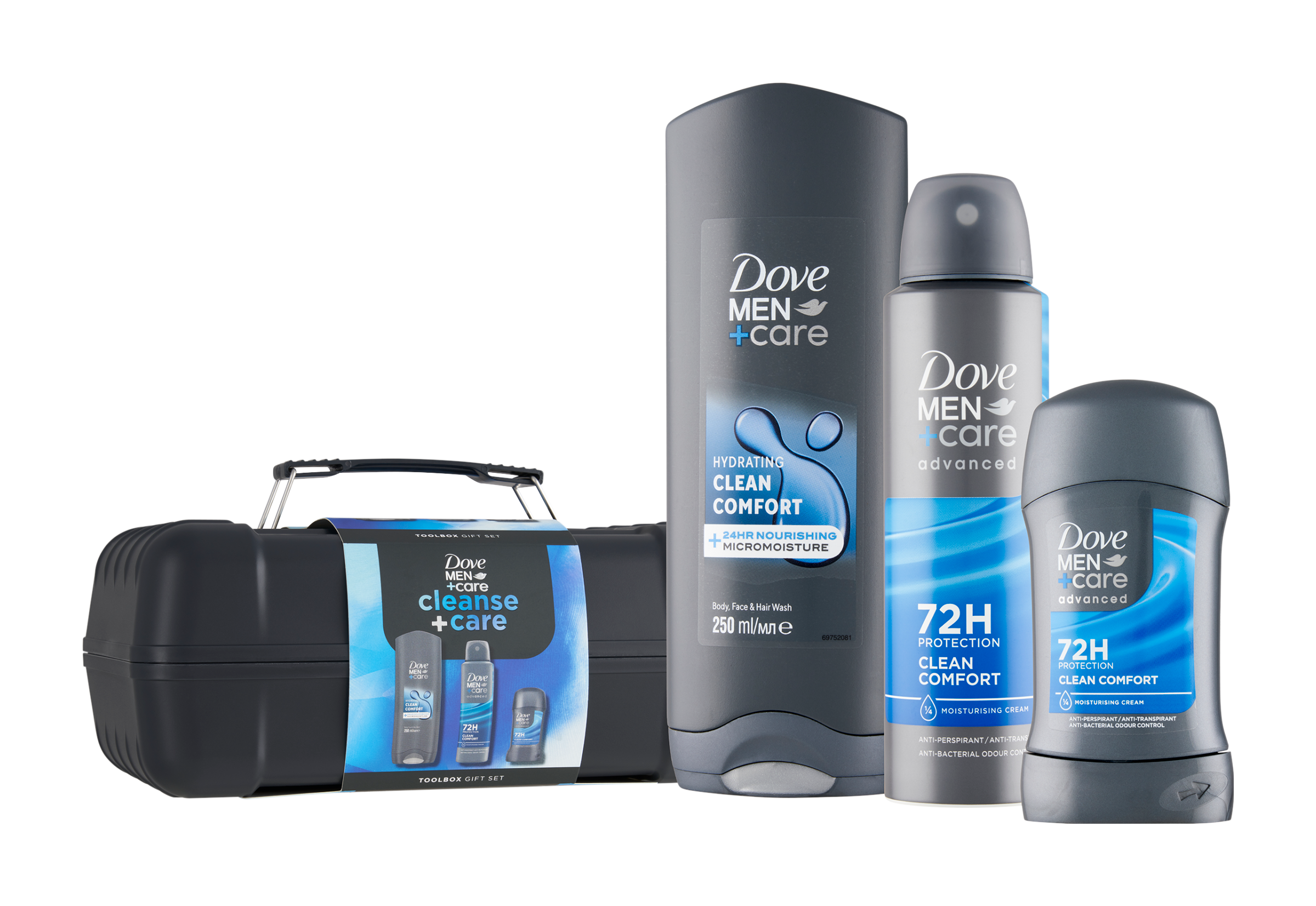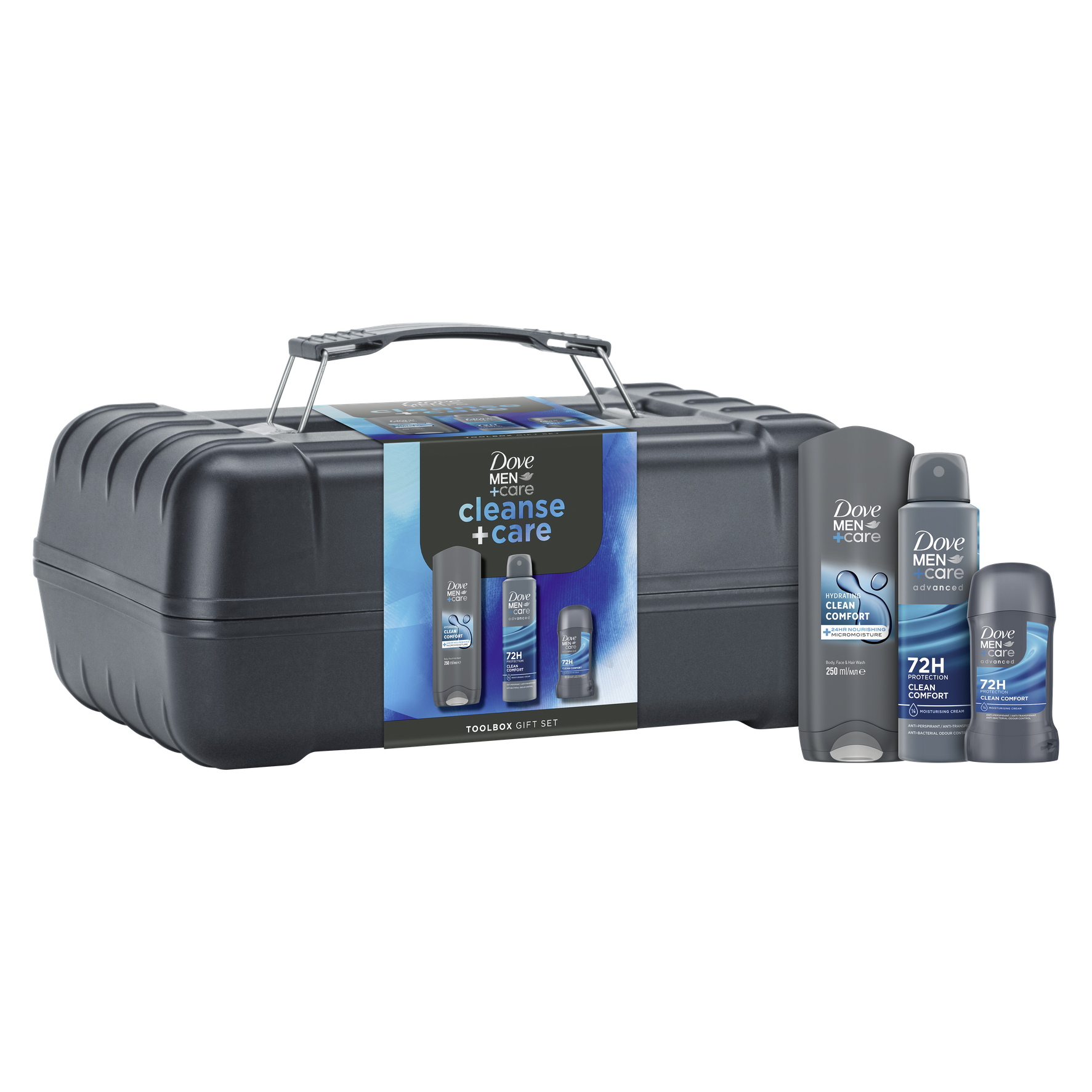 Obdarujte svého blízkého vánočním balíčkem Dove Men+Care Clean Comfort s boxem na nářadí. Jedinečné složení sprchového gelu Dove Men+Care Clean Comfort s technologií MicroMoisture, která se aktivuje napěněním gelu, pomáhá uzamykat v pokožce její přirozenou vlhkost a zanechává ji svěží a hydratovanou. Vysoce účinné složení se snadno oplachuje a přináší osvěžující čistotu a celkové pohodlí pokožce. Je však také natolik jemné, že můžete gel použít nejen pro mytí pokožky těla, ale také obličeje. Antiperspirant Dove Men+Care Advanced Clean Comfort pomáhá bojovat s potem a tělesným pachem po dobu až 72 hodin. Technologie s ¼ hydratačního krému pomáhá pokožku chránit proti podráždění. Výsledkem je hladká a vyživená pokožka vašeho podpaží. Prodlužte si pocit svěžesti díky pánskému deodorantu s čistou vůní, jako je například tuhý antiperspirant Dove Men+Care Clean Comfort. Tento tuhý deodorant chrání proti pocení a tělesnému pachu po dobu 48 hodin. Zanechává na pokožce jemnou vůni, díky které budete skvěle vonět po celý den. Tohle trio je skutečný základ pro muže, který dodá pokožce potřebnou vůni a hydrataci. Navíc s boxem na nářadí jako dárek.