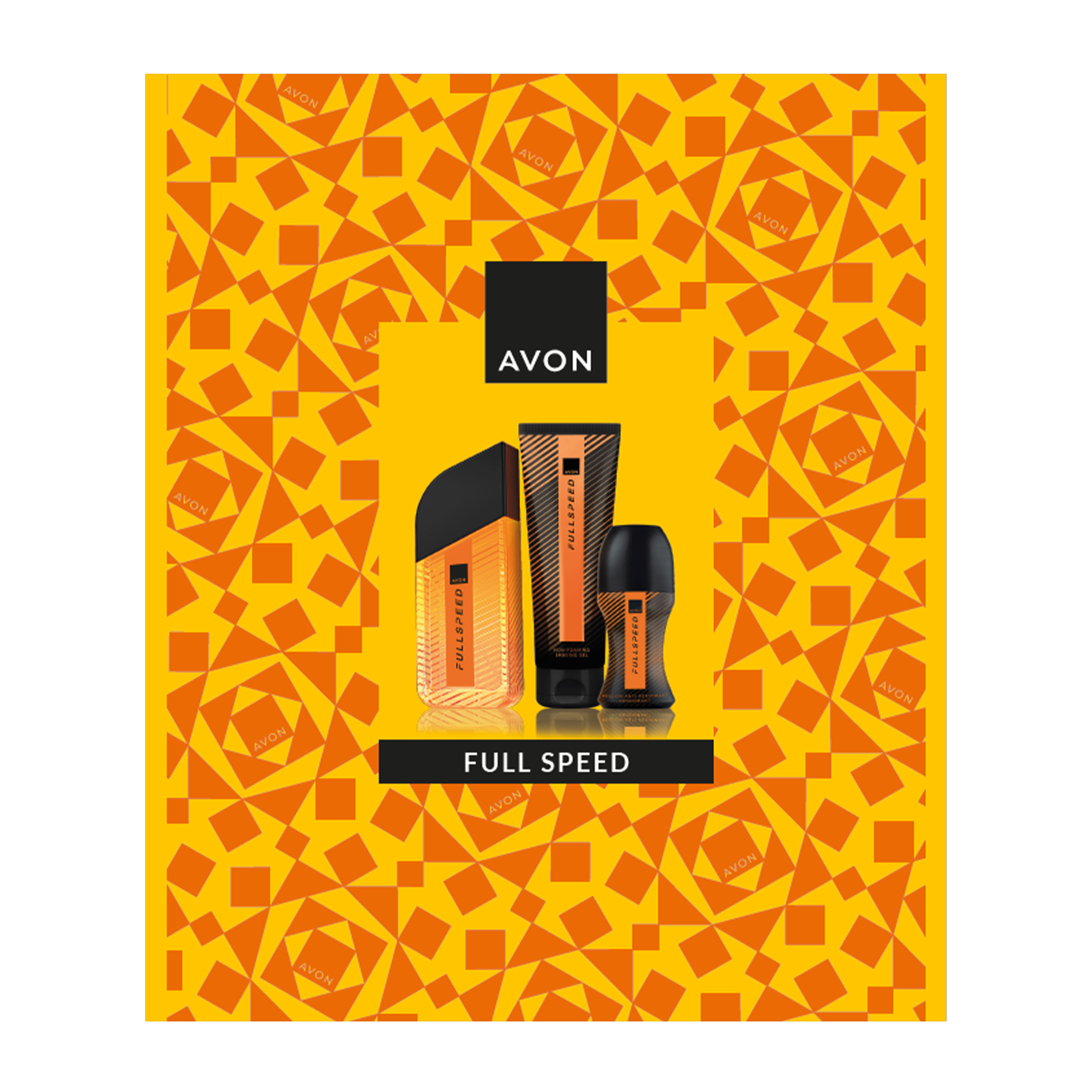 Dárková sada obsahuje toaletní vodu pro muže Full Speed (100 ml), kuličkový deodorant antiperspirant (50 ml) a nepěnící gel na holení (100 ml)