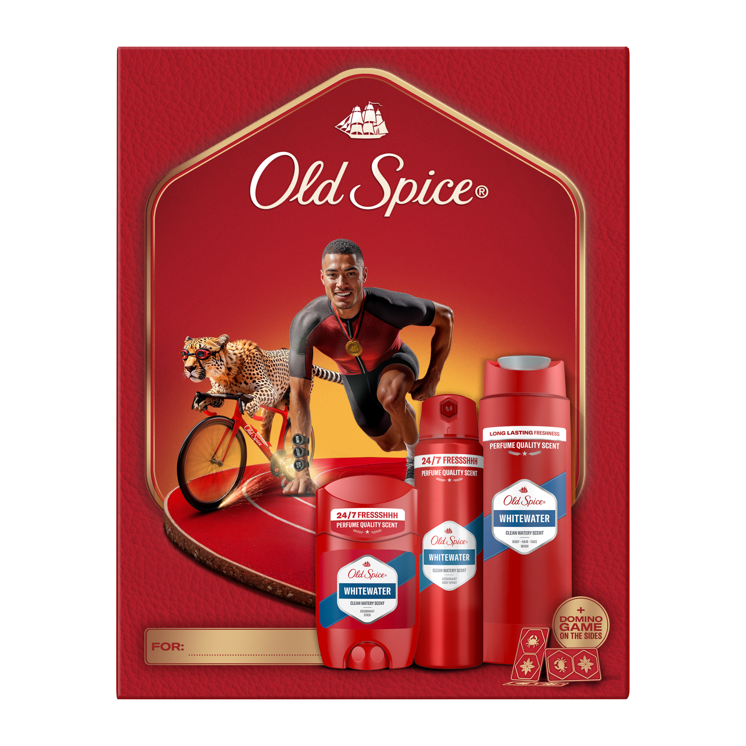 Hledáš dokonalý dárek pro milovníka běhu, aby mohl sportovat s neúnavnou vášní, nadšením a legendární vůní? Už ho nemusíš dále hledat! Dárková sada obsahuje tuhý deodorant, sprej a sprchový gel pro muže Whitewater, vše krásně zabalené v kartonové krabičce s designem Ironman. Kromě toho obsahuje hru domino, kterou si sestavíš sám: jednoduše vystříhej kousky z krabičky a užij si voňtastický okamžik! S vůni parfémové kvality Old Spice Whitewater se nemůžeš splést: díky této vůni s čerstvými tóny vody, santalového dřeva, citrusů a jantaru budeš vonět neodolatelně jako zpěv sirén. Proč ještě nemáš tuto dárkovou sadu Old Spice ve svém košíku?