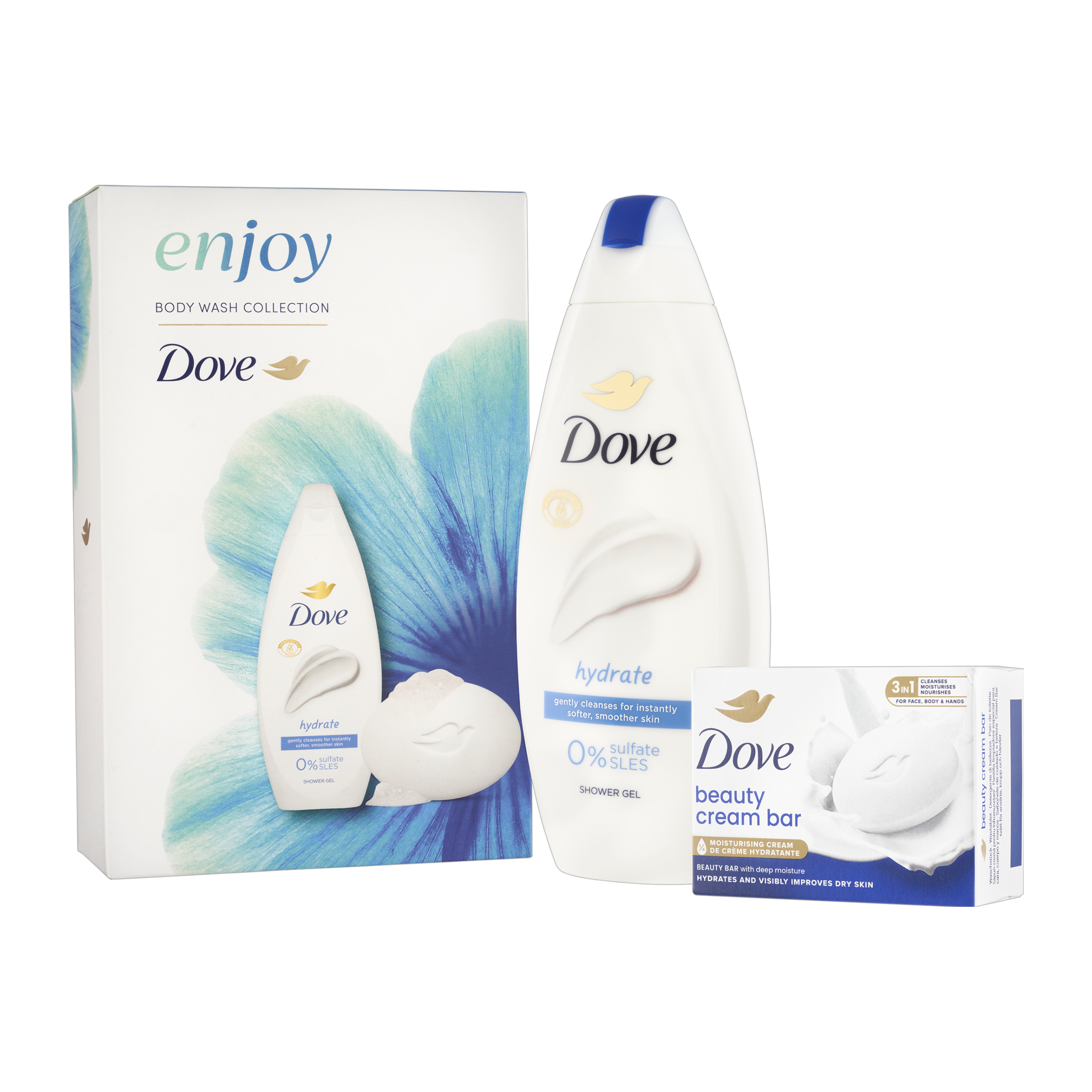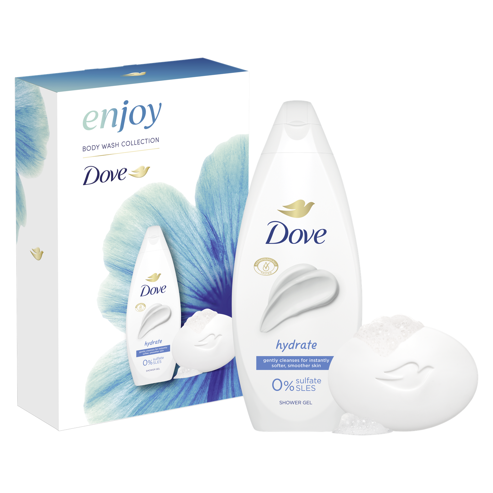 Hledáte ten pravý dárek pro Vaši blízkou osobu? Vsaďte na jistotu. Připravili jsme pro vás dárek plný jemnosti a péče pro pokožku. Přesně to je dárková sada Dove, která obsahuje oblíbený sprchový gel a tuhé mýdlo. Dove sprchový gel Hydrate s jemnou pudrovou vůní jemně čistí pro okamžitě jemnější a hladší pokožku. Tajemstvím receptury sprchových gelů Dove je obsah hydratačních složek, které se přirozeně vyskytují v pokožce a rychle se vstřebají. Zároveň obsahují jemné bezsulfátové čisticí složky, složení je tedy vhodné i pro citlivější pokožku. Už po první sprše bude pokožka vláčnější a lépe hydratovaná. Jemné čisticí složky krémové tablety Dove Original napomáhají pokožce udržet vlastní vlhkost a nevysušují ji. Spojení jemných čisticích složek s charakteristickým přídavkem ¼ hydratačního krému v krémové tabletě Dove Original zanechává pokožku jemnější, hladší a viditelně zdravější.