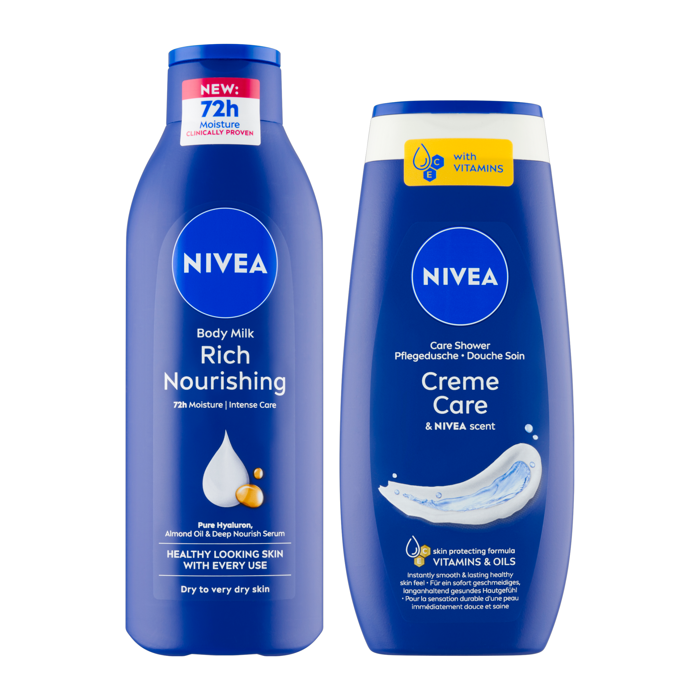 Vánoční dárek plný péče a lásky k pokožce. Mráz a vítr pokožku vysušují, proto je třeba se o ni náležitě postarat. Pečující sprchový gel Creme Care s vitamíny C a E pokožku hýčká už během sprchování a zabraňuje jejímu vysušování. Jedinečná vůně NIVEA navíc pohladí i vaše smysly. Po sprše péči dotáhněte krémovým tělovým mlékem Rich Nourishing, které namáhané suché pokožce dodá pořádnou dávku hydratace po 72 hodin. Pak už si jen užijte jemný pocit pohodlí a zdravě vypadající pokožku.