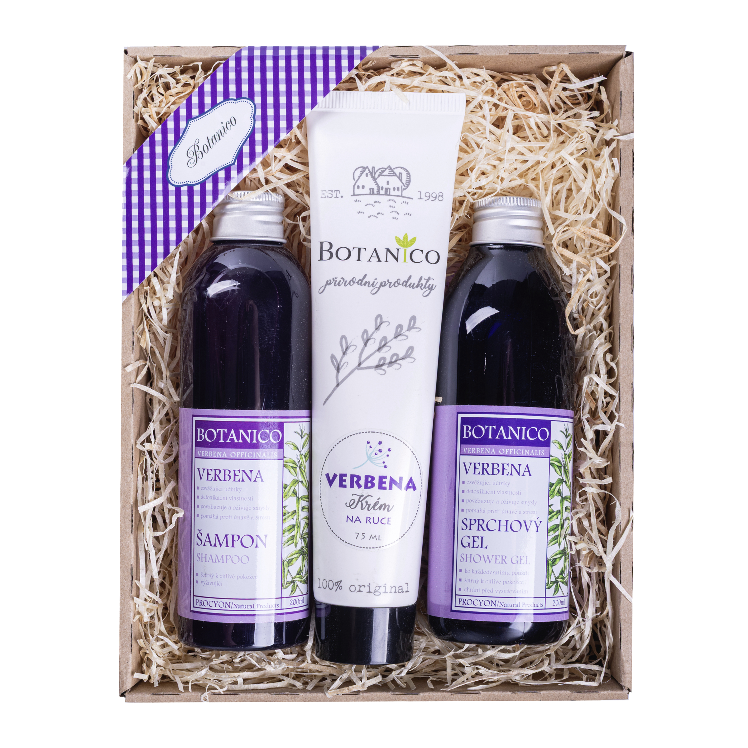 Šampon na vlasy Verbena (200 ml), sprchový gel Verbena (200 ml), krém na ruce Verbena (75 ml).