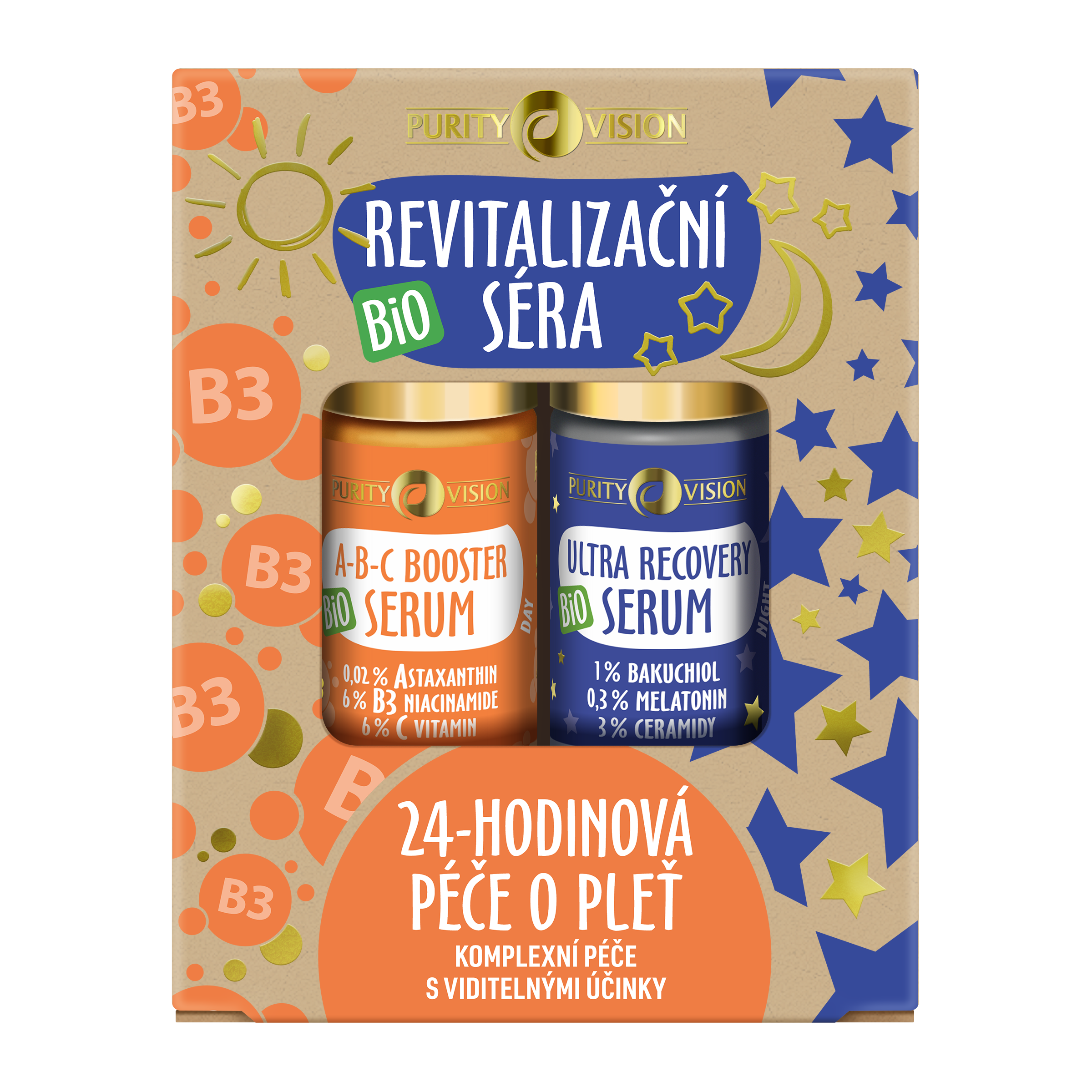 Rozzařte a revitalizujte pleť s revolučními séry Bio ABC Booster DAY a Bio Ultra Recovery NIGHT. Denní sérum ABC Booster kombinuje silné antioxidanty jako astaxanthin, který má za úkol ochranu před vnějšími vlivy a kombinace niacinamide(B3) spolu s vitaminem C přispívají k rozjasnění pleti a brání jejímu předčasnému stárnutí.