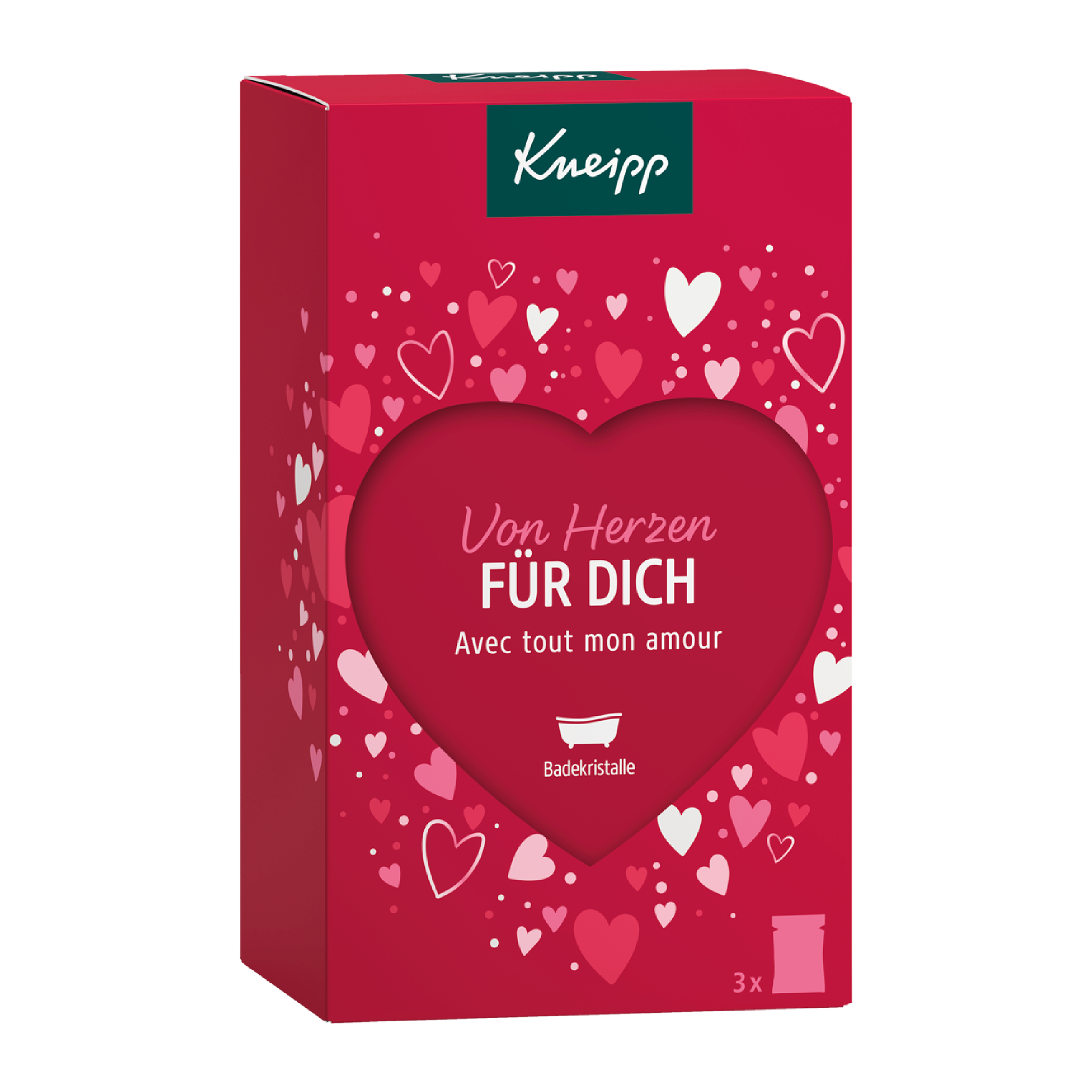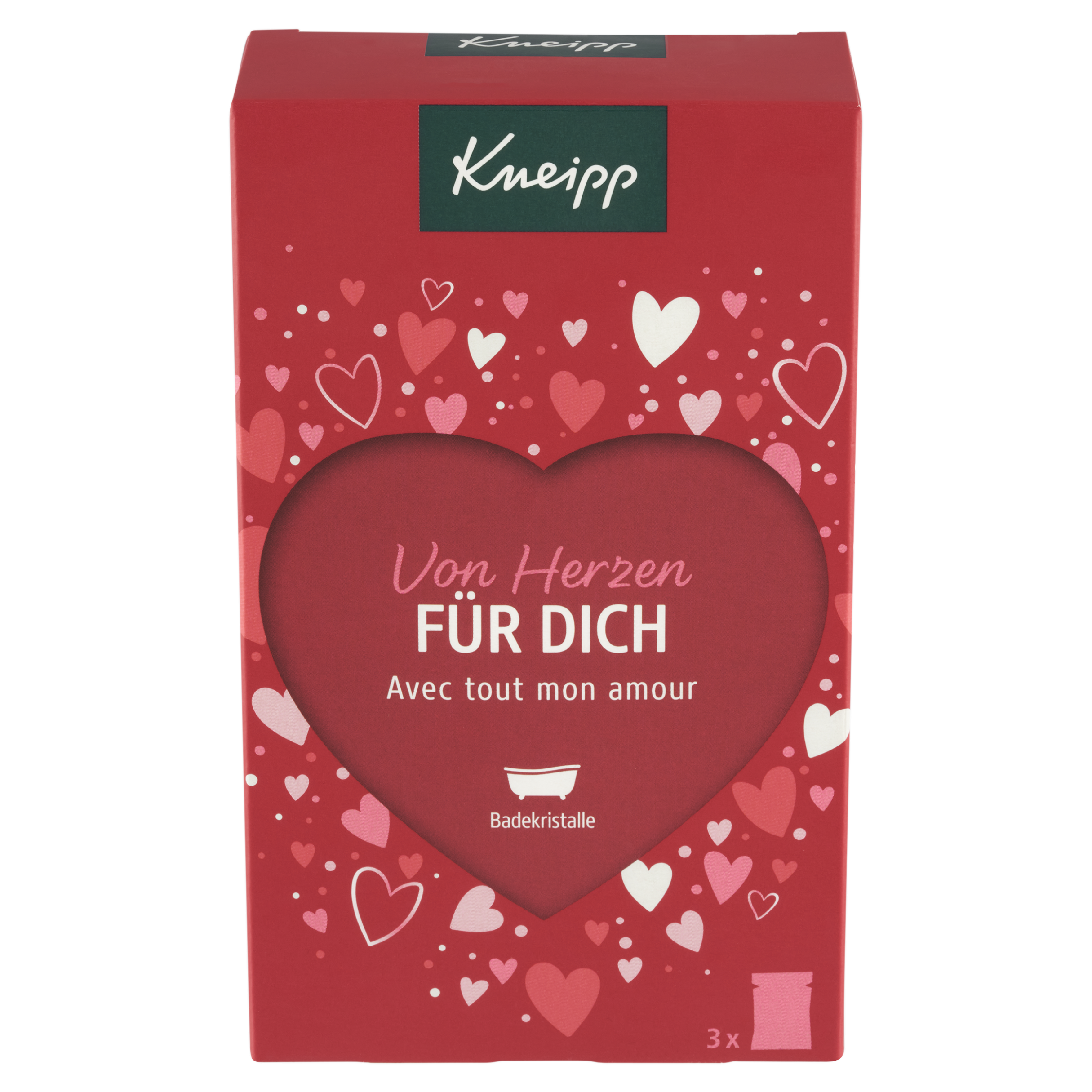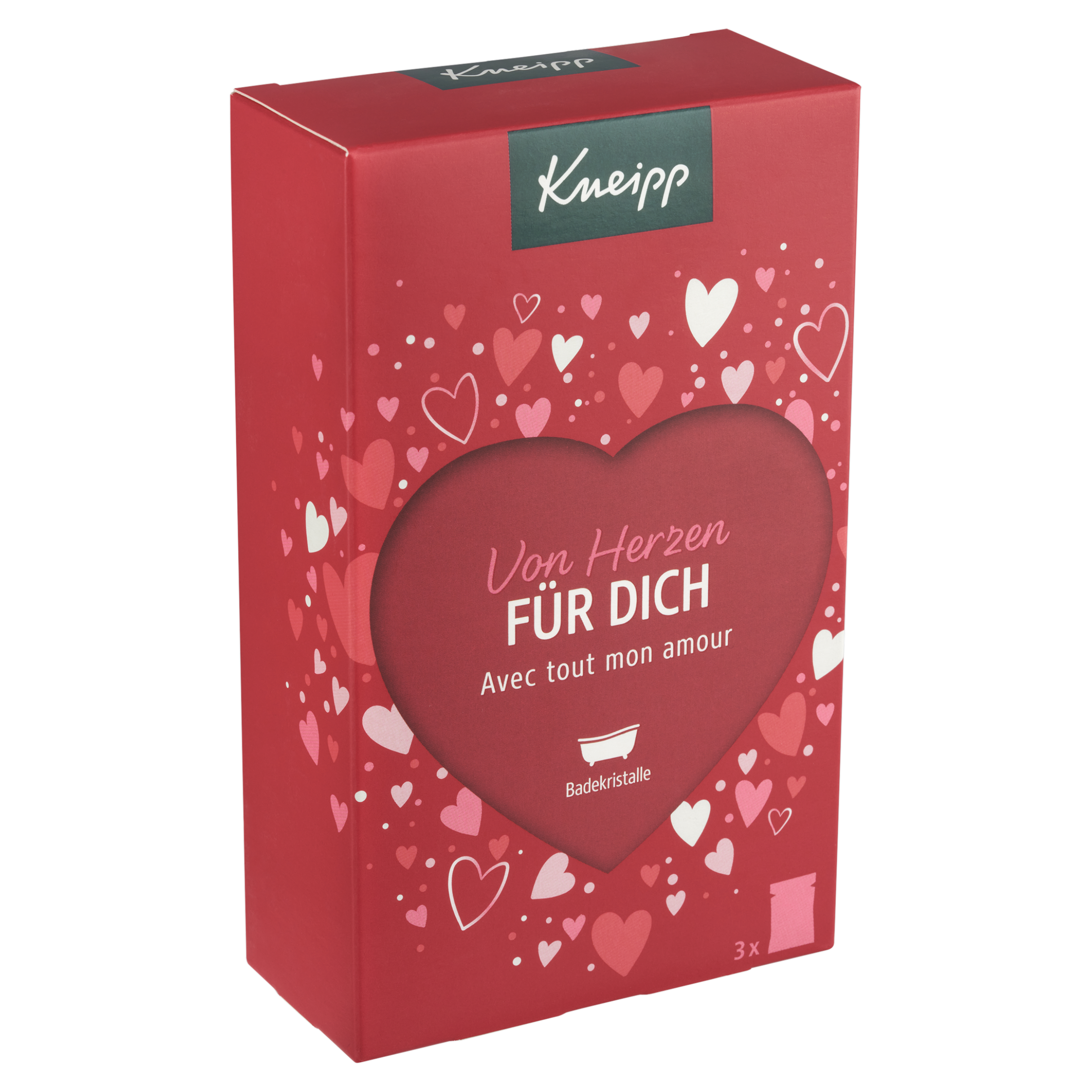 Ukažte své vřelé city dárkem plným srdíček. Dárková sada Kneipp Pro Tebe je tím pravým dárkem k Valentýnu, ke Dni matek a mnoha dalším příležitostem. Krabička s motivy srdíček a velkým výřezem ve tvaru srdce skrývá 3 koupelové soli s okouzlujícími vůněmi. Sůl s výmluvným názvem Miluji Tě! naplní koupelnu intenzivní ovocnou vůní. Ucítíte brusinky, maliny a pomerančovou kůru. Do koupelové soli Right from the heart se schovala vůně celé kytice, obsahuje výtažky a oleje z pivoněk, růží, kamélií a vonné trávy palmarosa. Poslední koupel se jmenuje Nejmilejší člověk a kombinuje květinové, ovocné i dřevité vůně. V jejím složení najdete výtažky z ibišku a fíků i oleje z exotických dřevin. Všechny koupelové soli pečují o pokožku, takže bude sametově hebká.