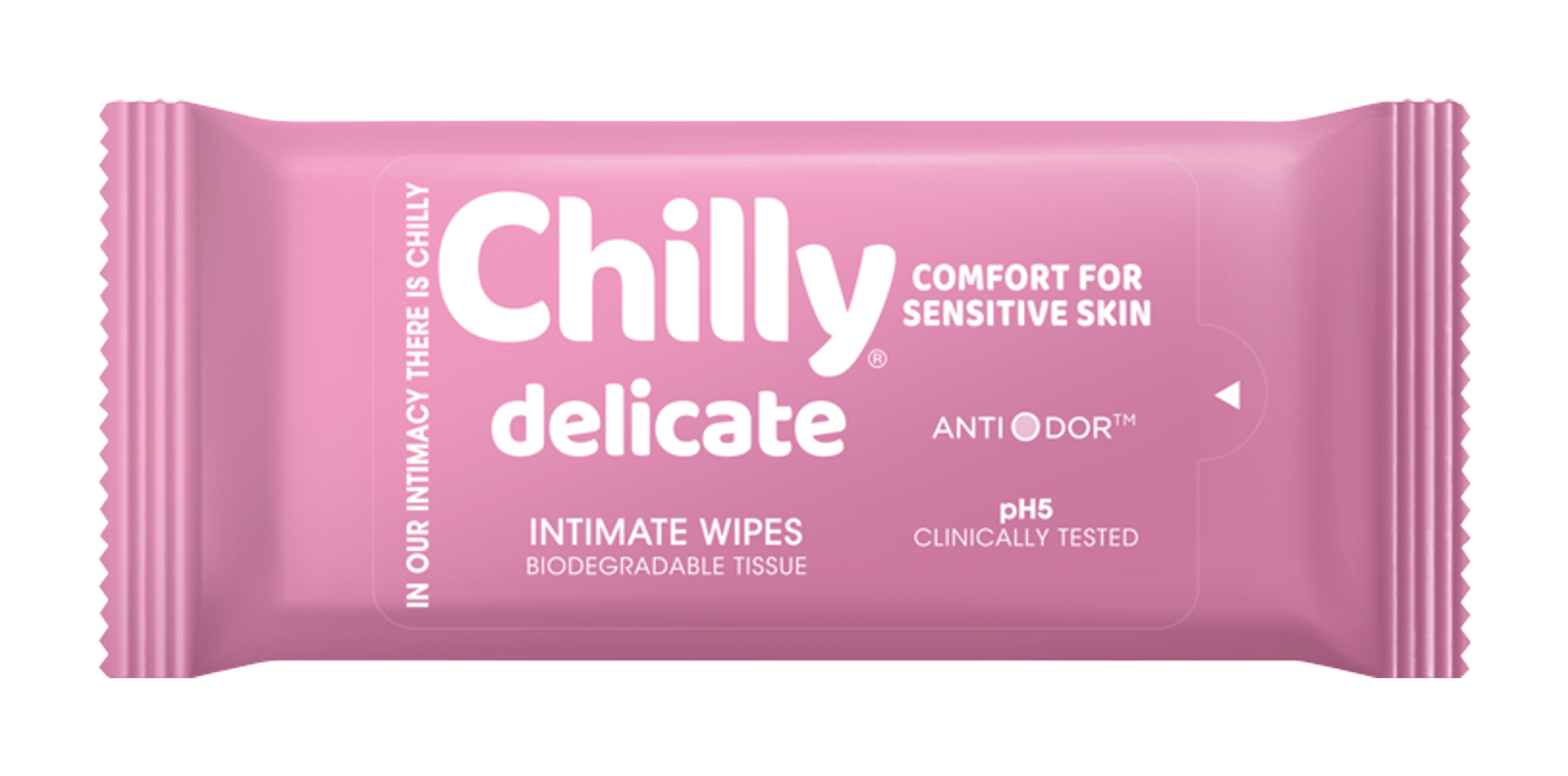 Chilly delicate ubrousky jsou obohacené o aloe a hammamelis, změkčující látky, které jemně čistí i tu nejcitlivější pokožku. Obohacené o molekulu proti zápachu, která neutralizuje vznik nepříjemného zápachu a díky antibakteriálnímu působení snižuje jeho tvorbu. Ubrousky s pH5, respektuje normální fyziologii sliznic vnějších pohlavních orgánů a okolních oblastí pokožky. Ideální pro použití mimo domov a ve všech situacích, kdy potřebujete jemnost. Mějte je vždy s sebou!