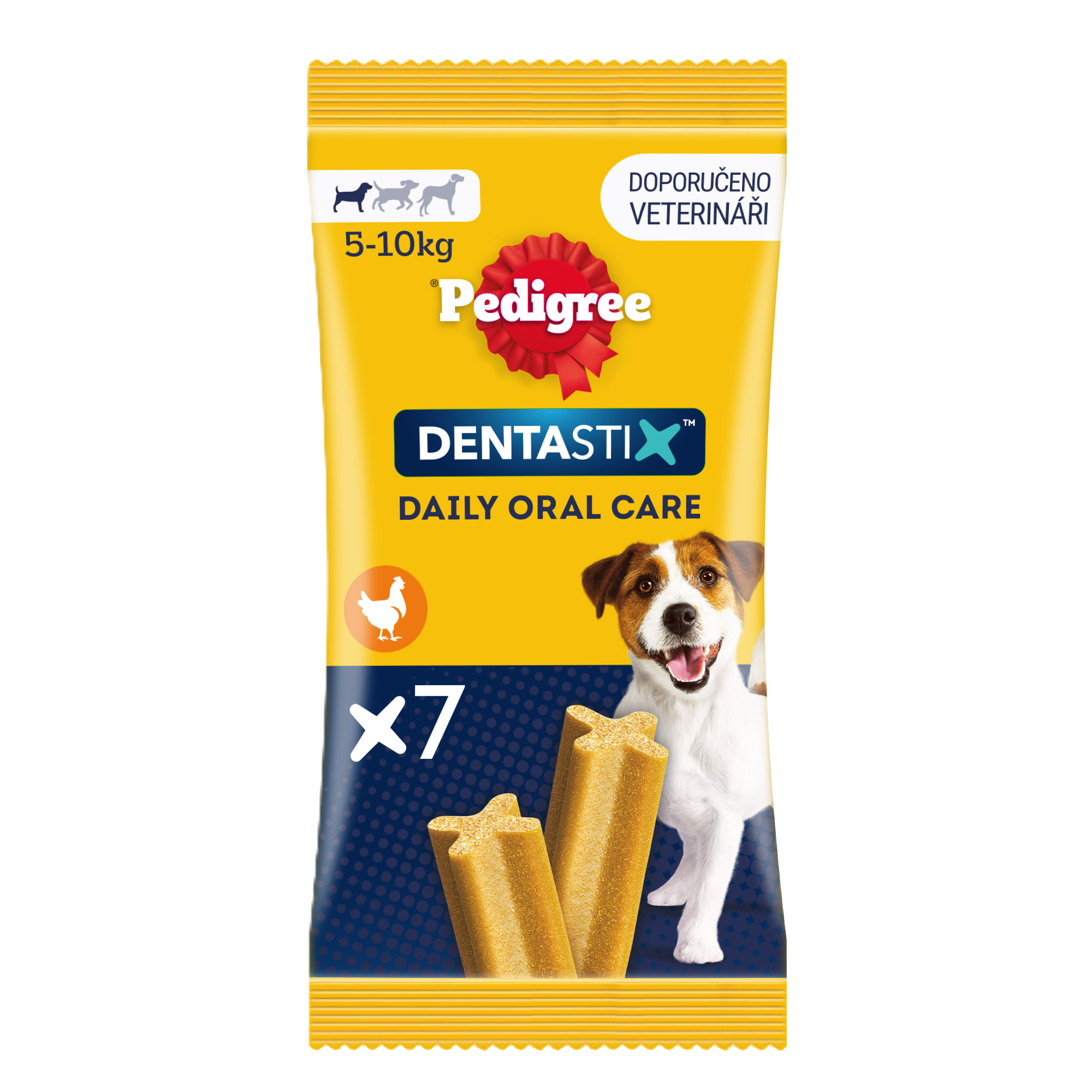 Pedigree Dentastix Daily Oral Care jsou dentální pamlsky v jedinečném tvaru písmene X, u kterých je vědecky dokázáno, že při každodenním užívání pomáhají snižovat tvorbu zubního kamene až o 80 %. Pedigree Dentastix Daily Oral Care mají jemnou abrazivní texturu a aktivní složky, které pomáhají omezit usazování plaku a tvorbu zubního kamene. Jsou chutné, přesto mají nízký obsah tuku, neobsahují přidaný cukr, umělá barviva a ochucovadla. Pedigree – posilujte to dobré ve svém psovi.