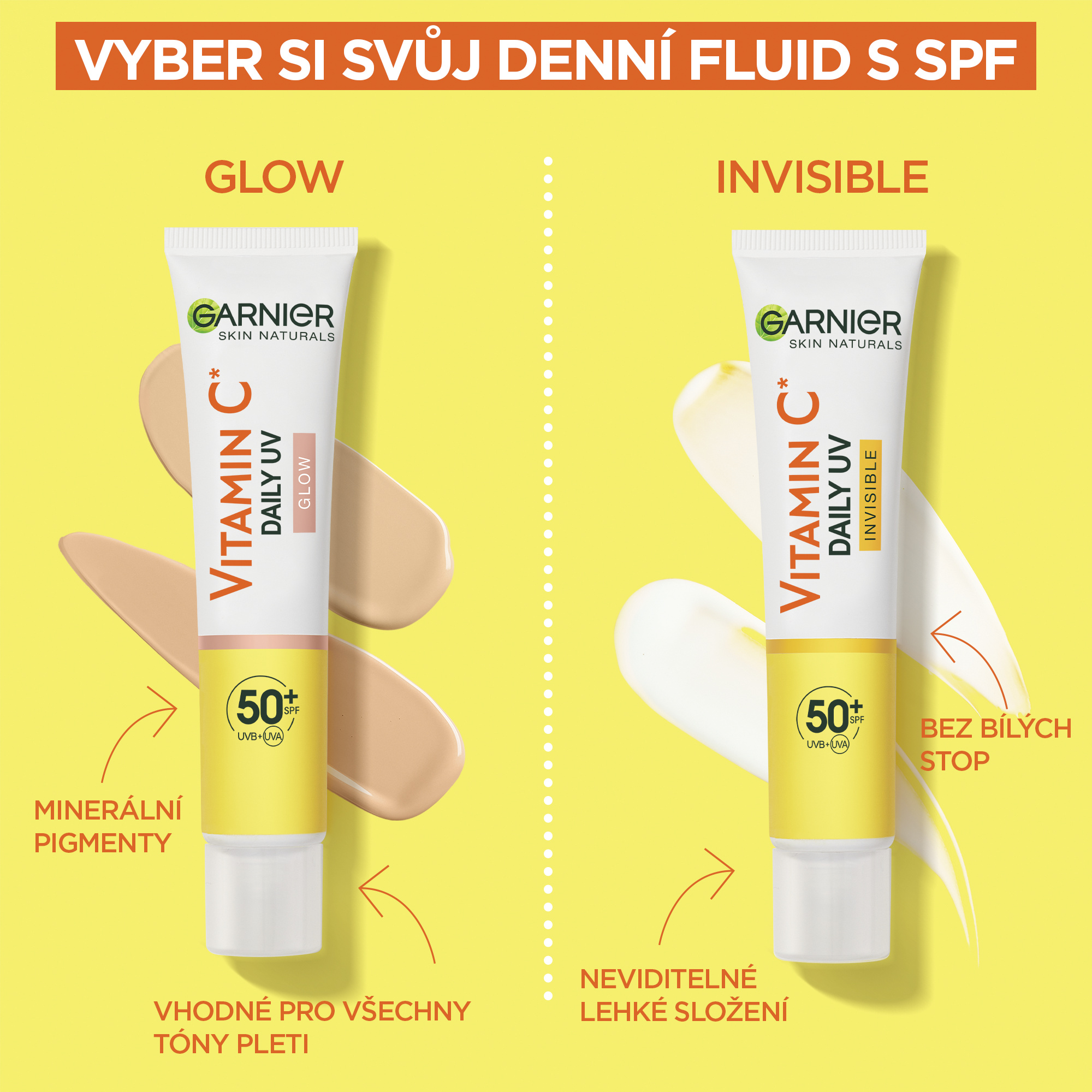 SPF ochrana je v dnešní době nutností pro zachování zdravého vzhledu pleti. Garnier nabízí každodenní řešení v podobě denního rozjasňujícího fluidu ve dvou variantách - buď jako neviditelný lehký fluid, nebo ve verzi glow s univerzální pigmentací pro jemné krytí při zachování maximální ochrany před sluncem.