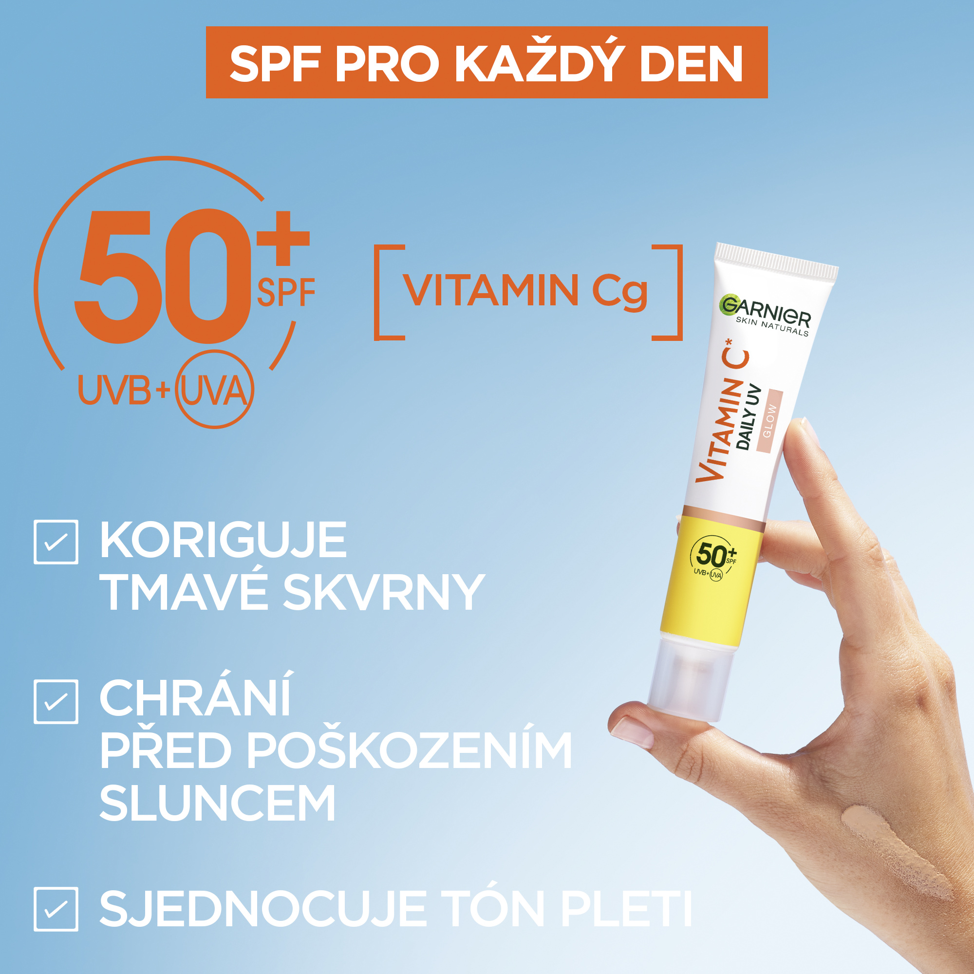 SPF? Každý den s denním rozjasňujícím fluidem s vitaminem C a SPF50+ od Garnier