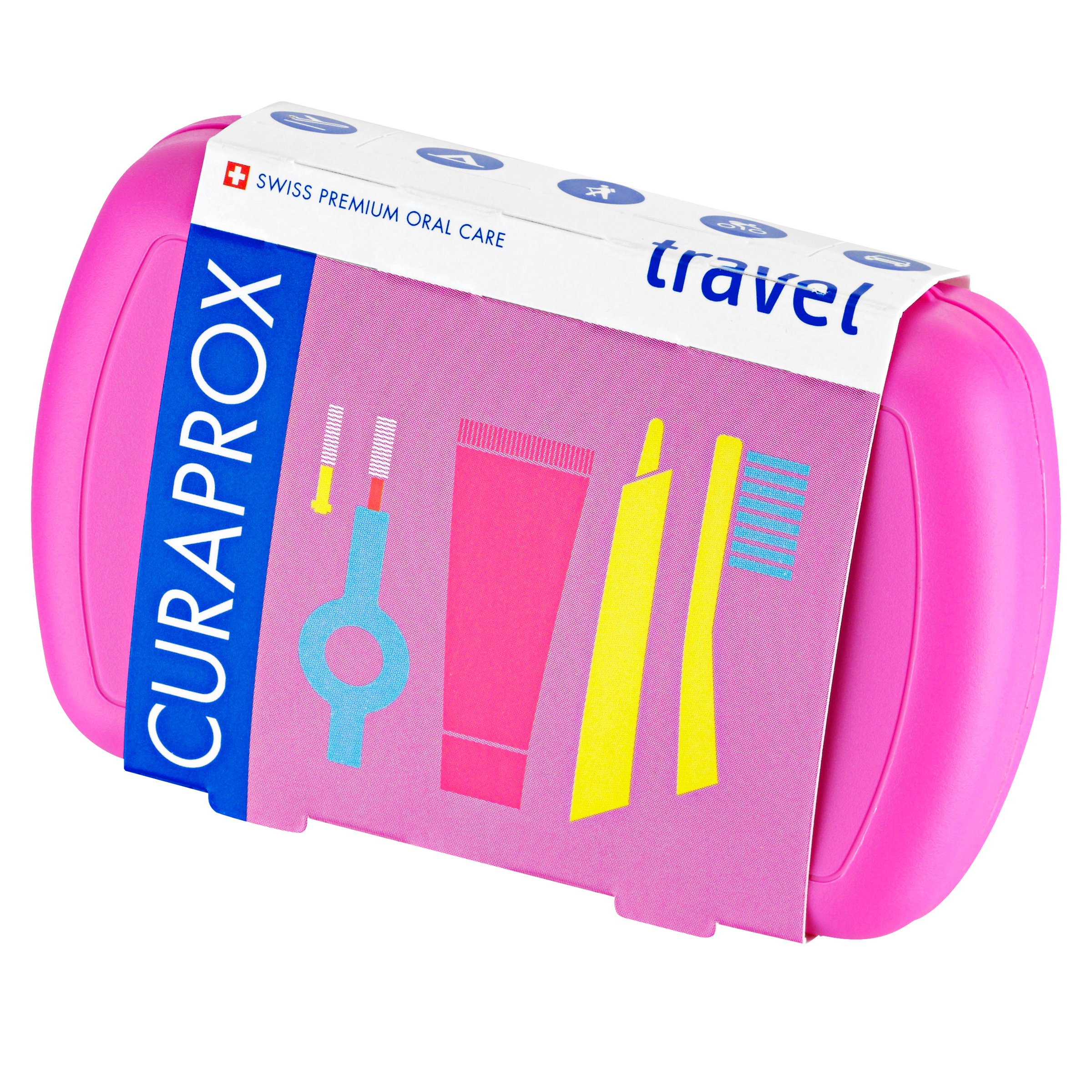 Už nemusíte dělat kompromisy. Na každé cestě můžete mít své pomocníky k dokonalé dentální hygieně vždy při sobě. Travel set je dostupný v několika variantách, které se liší barvou pouzdra a příchutí zubní pasty. Tato verze je v růžové barvě.