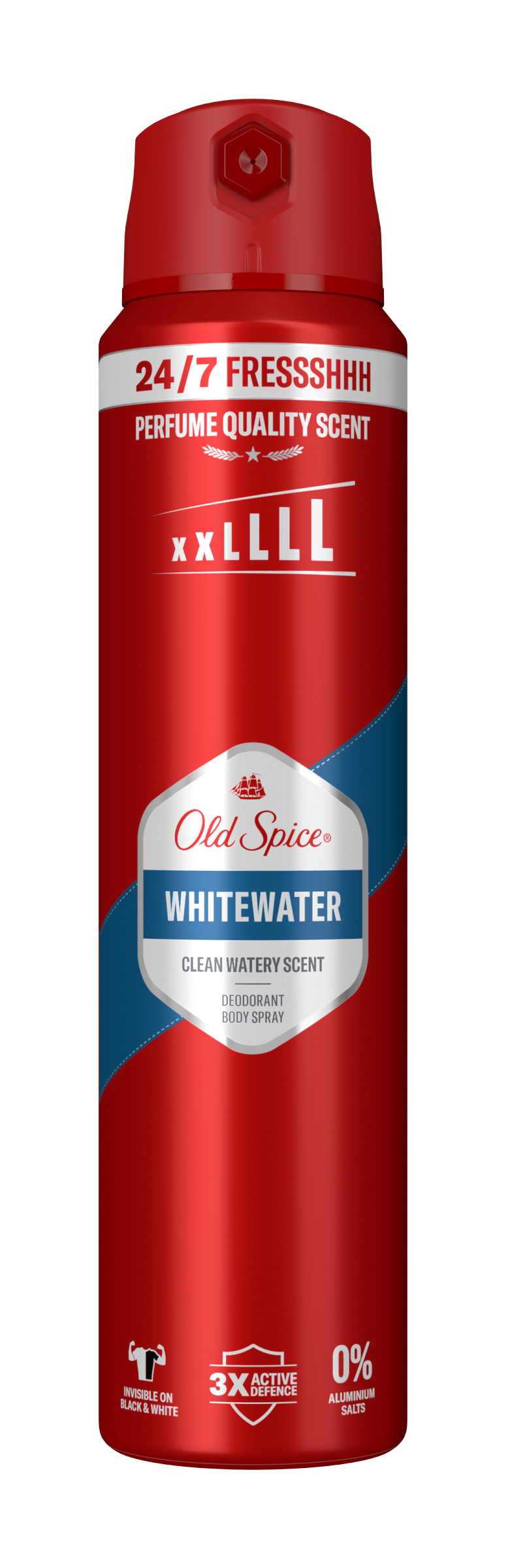 Dopřej si svěžest* 24 hodin denně, 7 dní v týdnu a voňtastické sebevědomí díky Whitewater deodorantu ve spreji Old Spice. A s touto úrovní bezstarostné svěžesti se můžeš soustředit na vyšší cíle, jako je uzavírání velkých obchodů nebo učení delfínů lidské řeči. UVOLNĚTE SLOŽENÍ 3× ACTIVE DEFENCE: Dlouhotrvající vůně / ochrana před zápachem / se složkami proti zápachu, takže budete vonět legendárně 24 hodin denně, 7 dní v týdnu* Díky vůni s čerstvými tóny vody, santalového dřeva, citrusů a jantaru budeš stejně neodolatelný jako zpěv Sirén. A zmínili jsme, že neobsahuje žádné hliníkové soli a zároveň je neviditelný na černém i bílém oblečení? Protože je to tak. *při každodenním používání