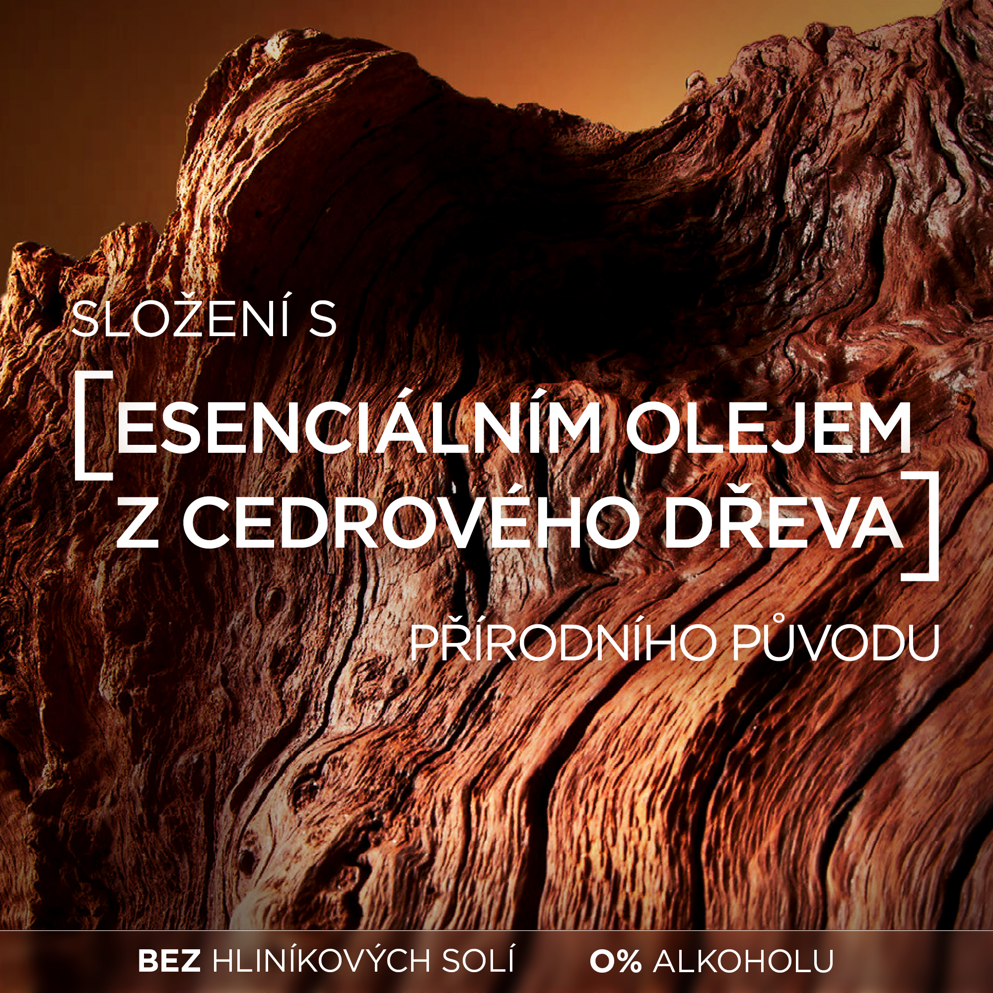 Deodorant L'Oréal Paris Men Expert s okamžitým osvěžením obsahuje esenciální olej z cedrového dřeva. Esenciální olej z cedrového dřeva má zemitou, uklidňující, dřevitou vůni. Má čisticí a přirozeně dezodorační vlastnosti.