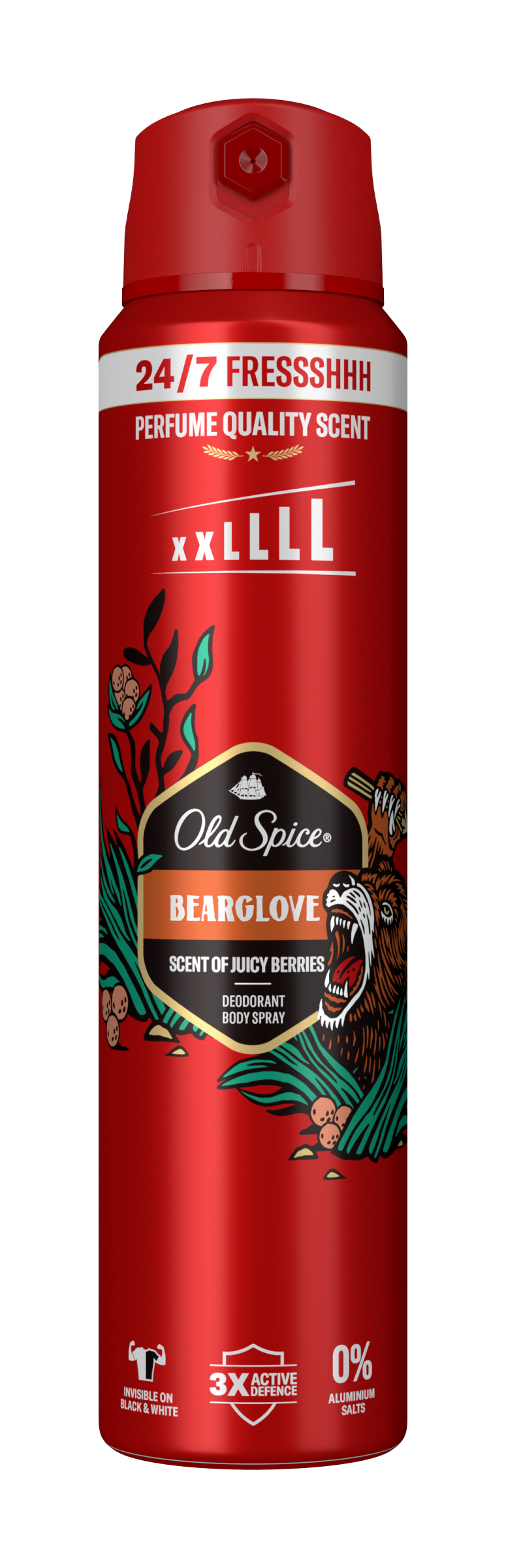 - Vyzkoušej vůni parfémové kvality Old Spice Bearglove: Tato vůně šťavnatých bobulí, pikantních citrusů, svěžího jablka s dotekem koření z tebe udělá lesního dravce, kterému nelze odolat